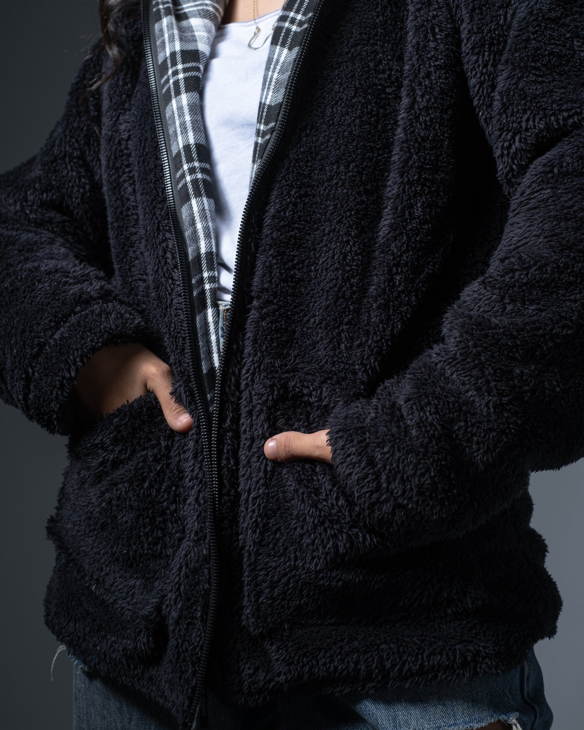 Discover luxurious warmth and style with our Double Face Checkered Faux Fur Jacket. The high-quality faux fur provides a soft and comfortable feel, while the timeless checkered print adds sophistication to any outfit. This jacket is the perfect addition to your wardrobe for chilly days and evenings.
