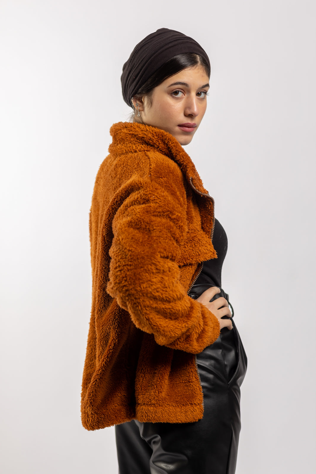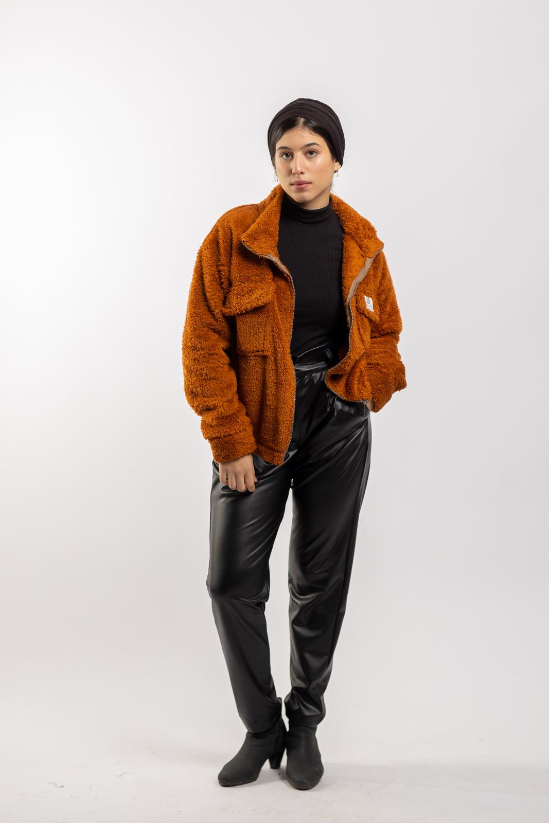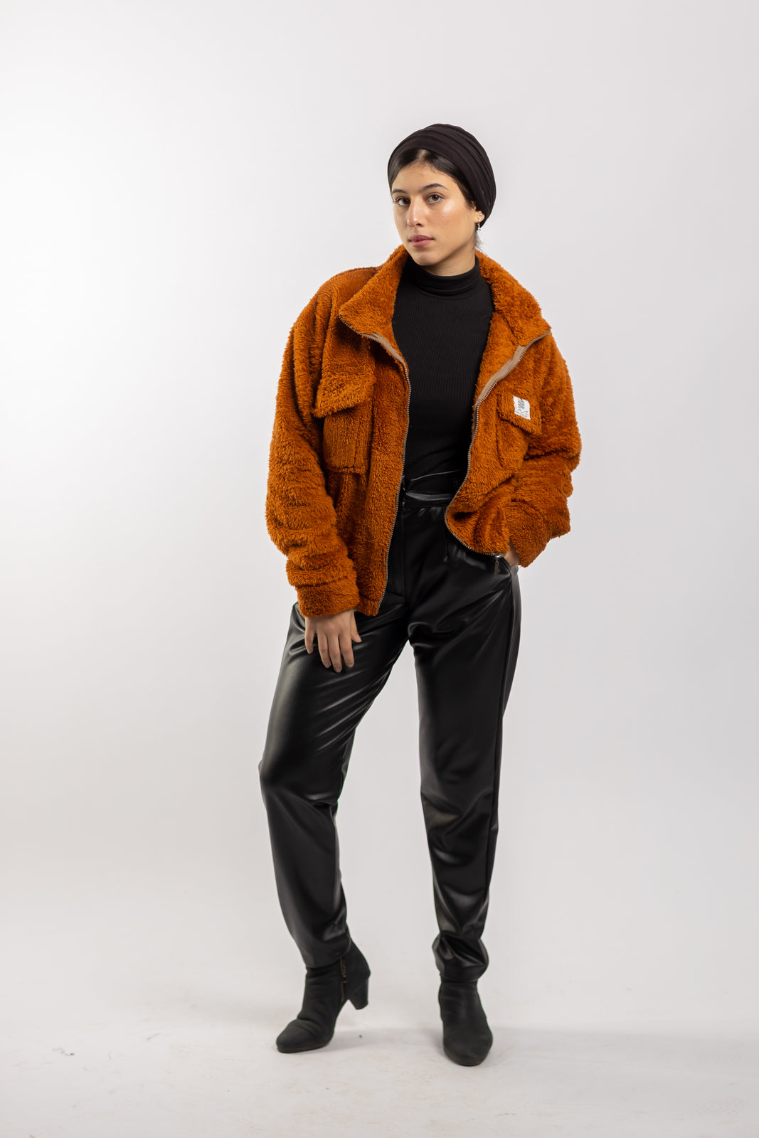 Our faux fur jacket made with high-quality materials, this jacket offers a luxurious look and feel without harming animals. Stay warm and stylish this winter season with our environmentally conscious and trendy fur jacket.