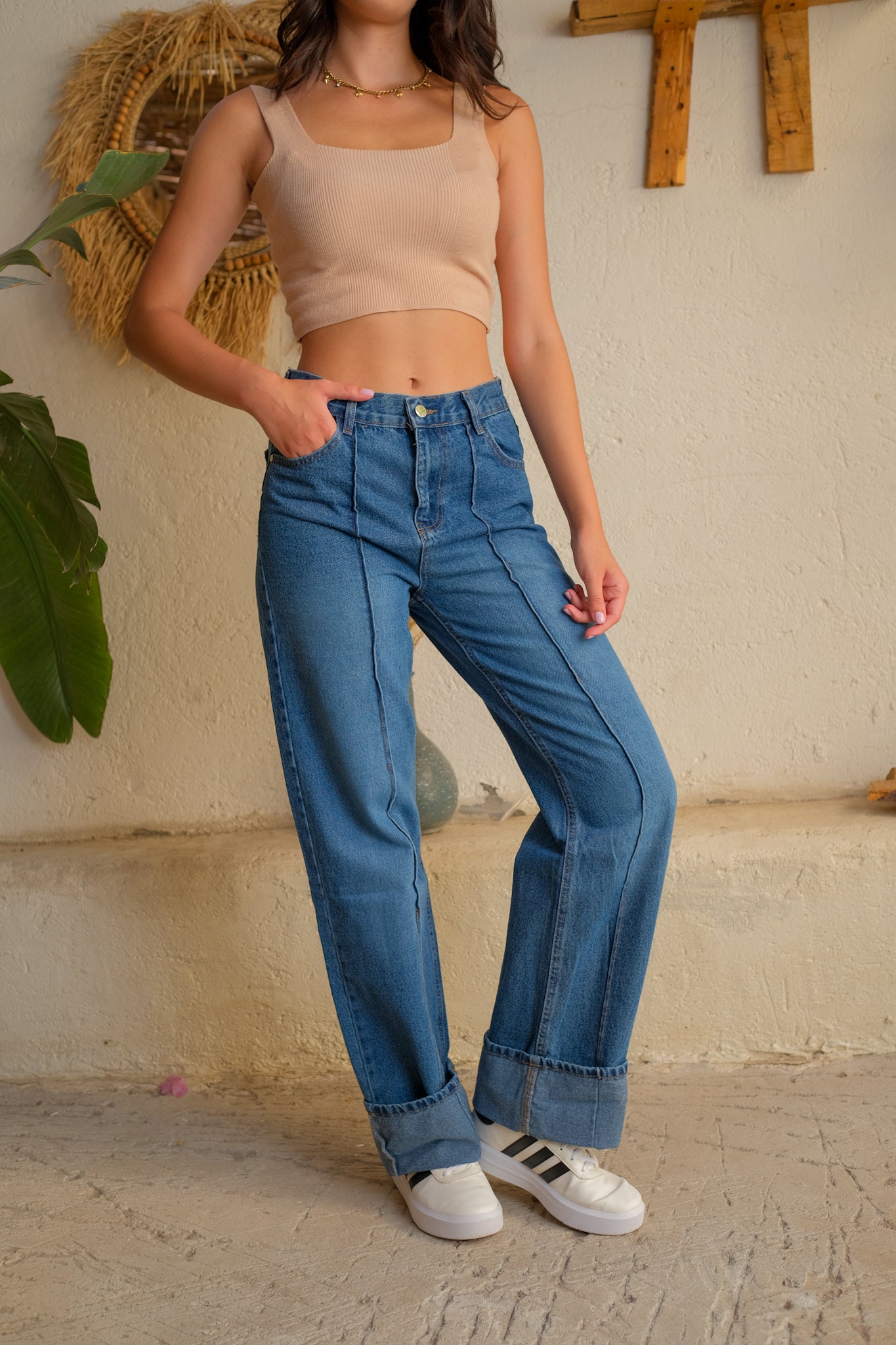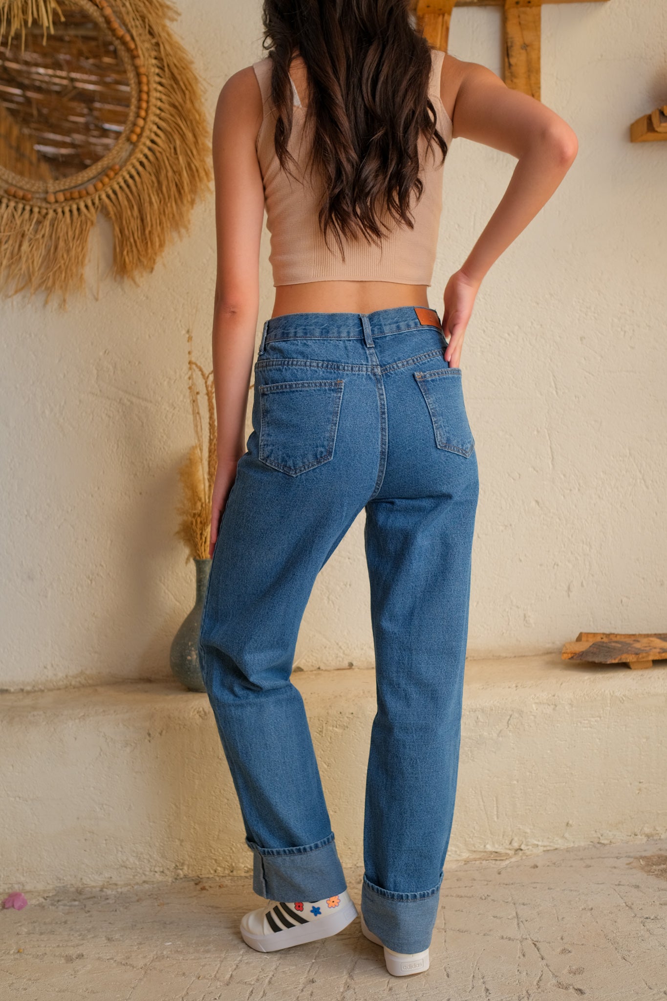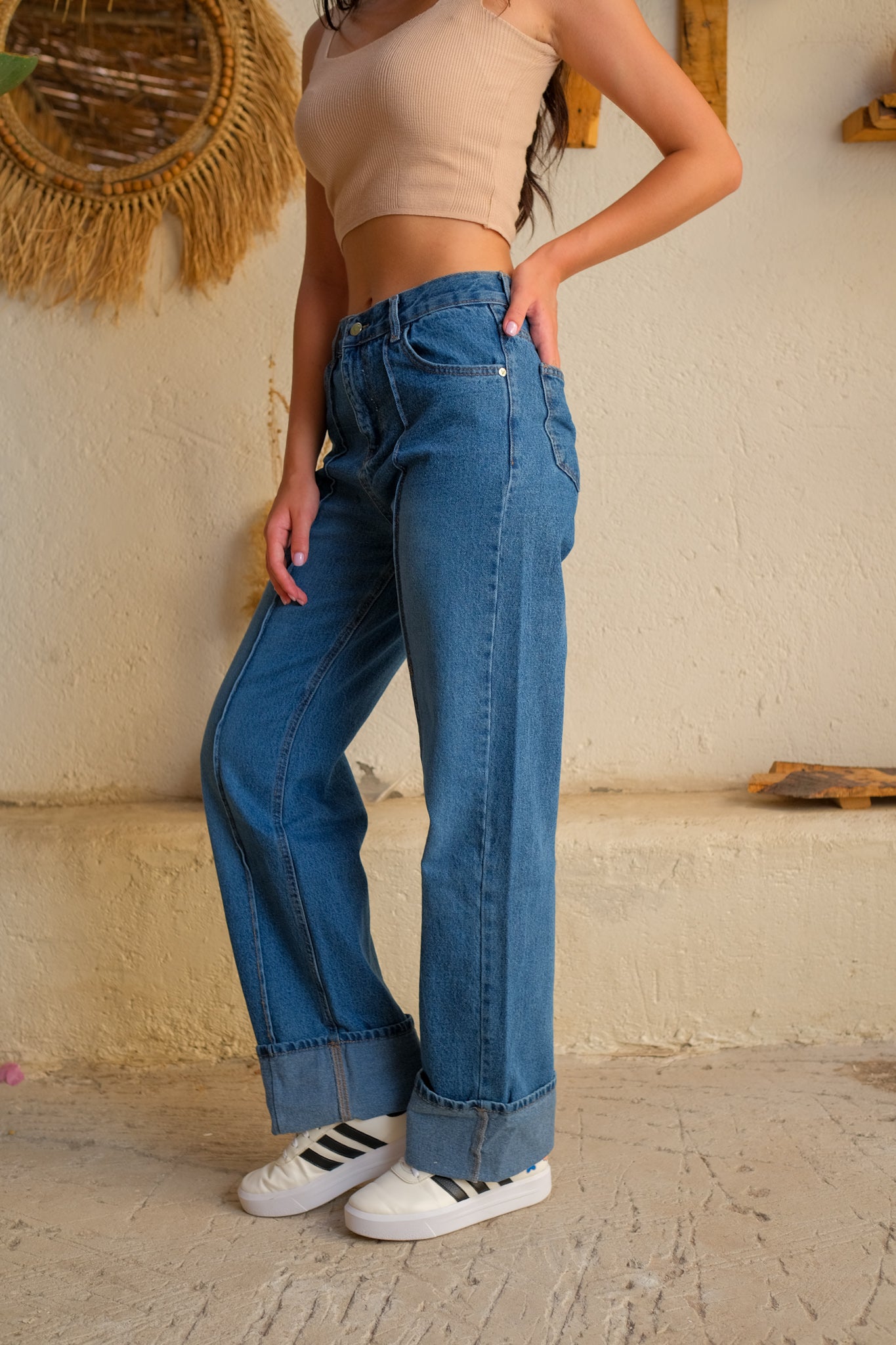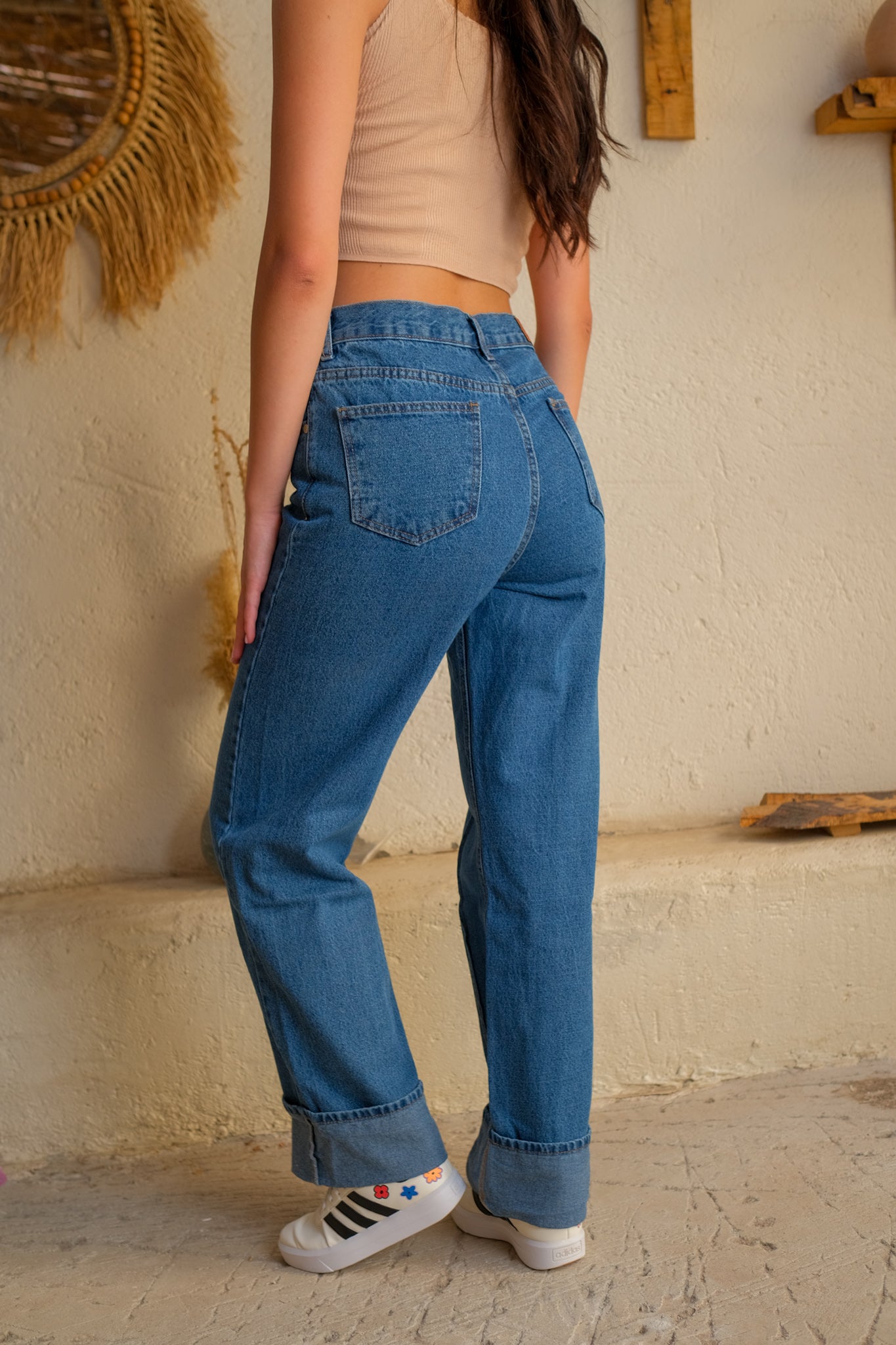 Elevate your everyday style with these cuffed straight-leg jeans.