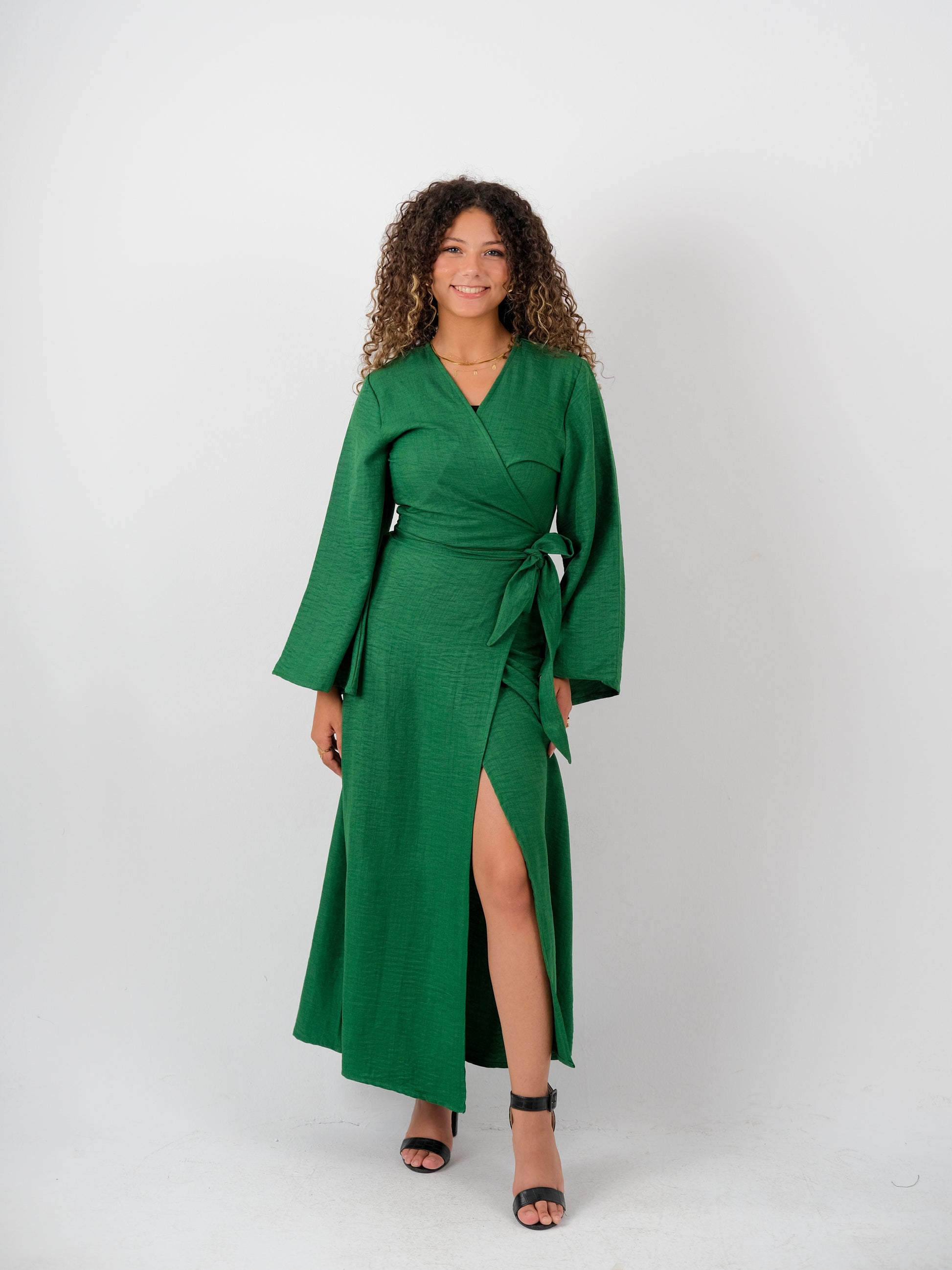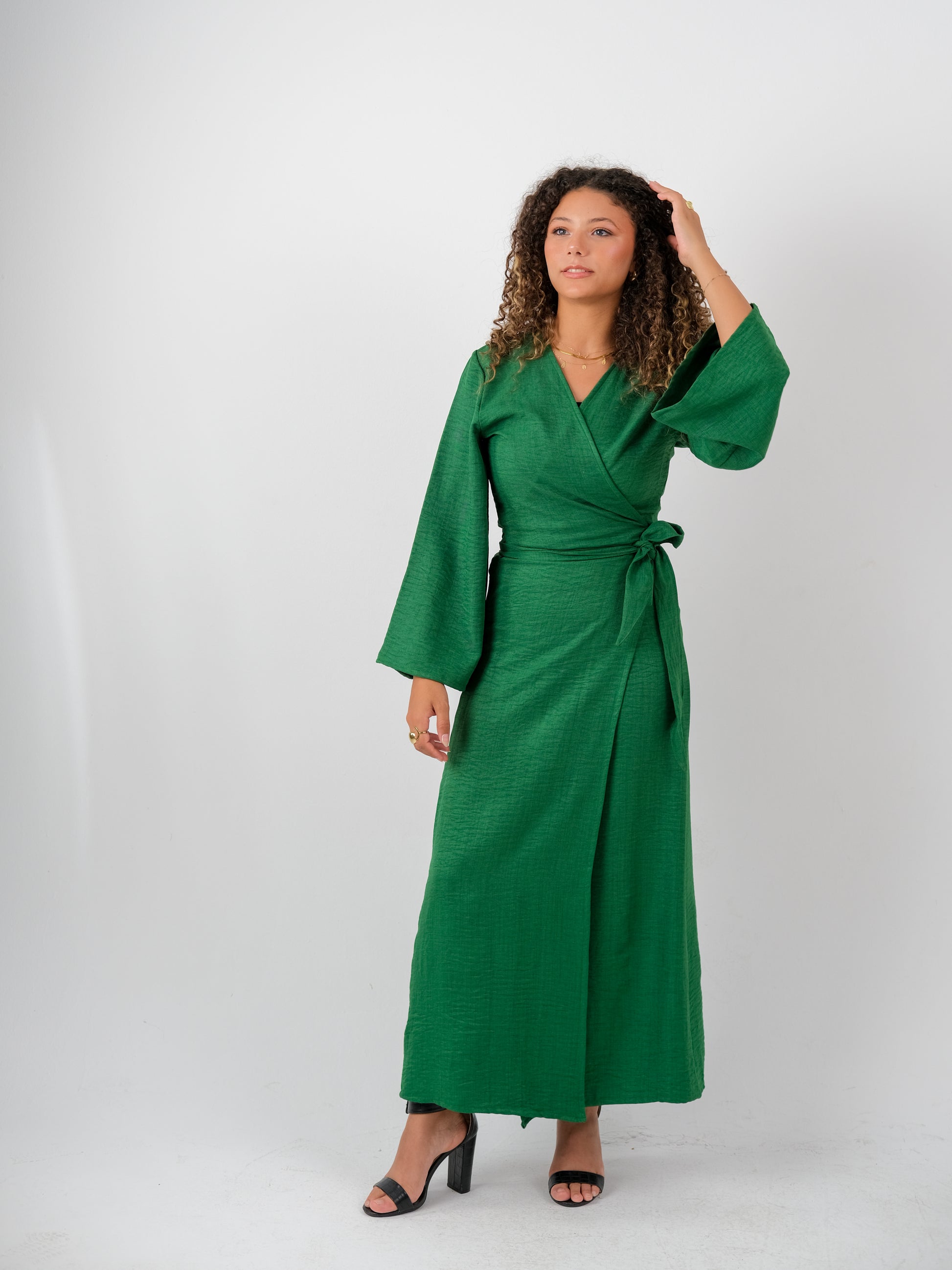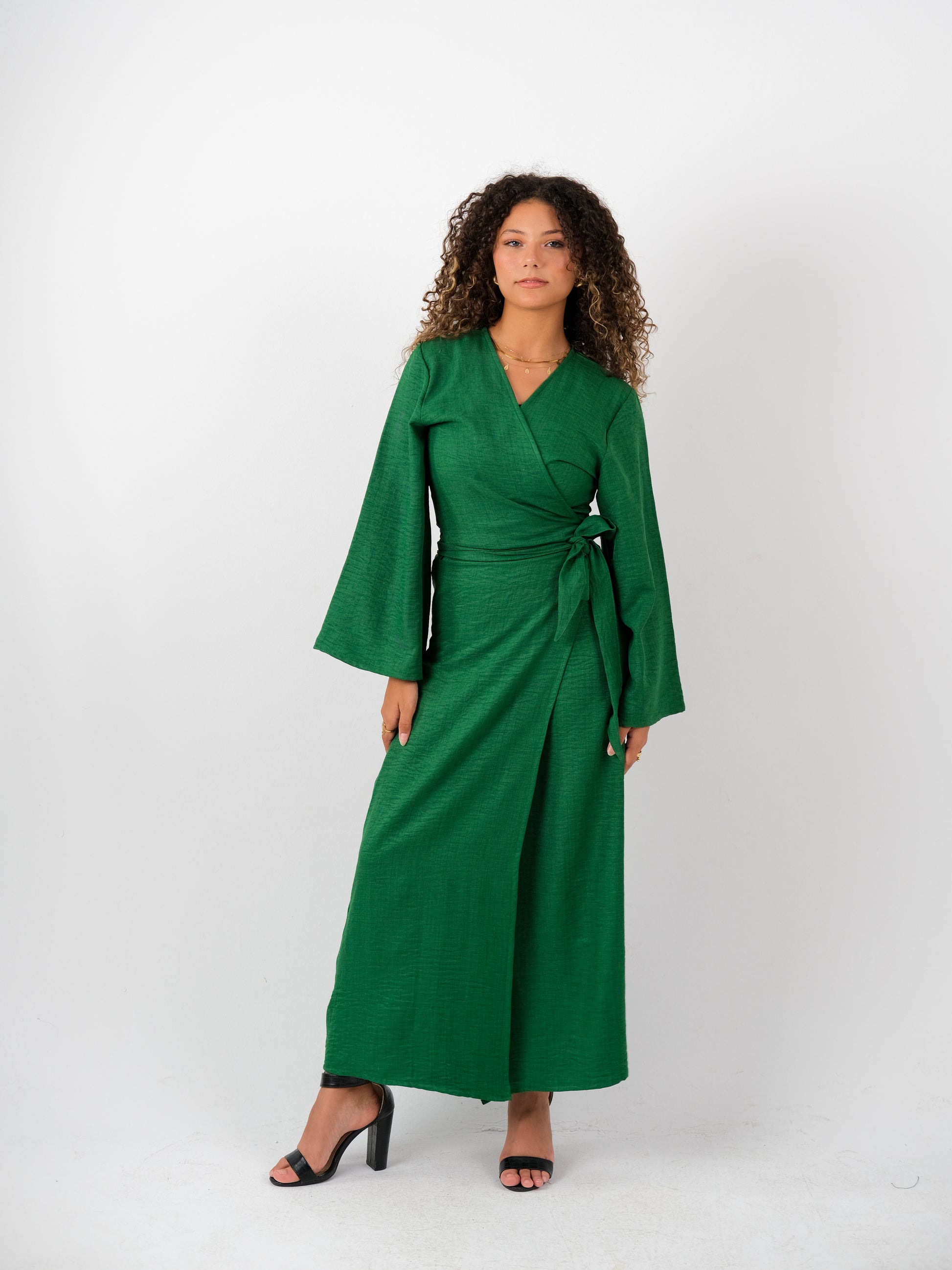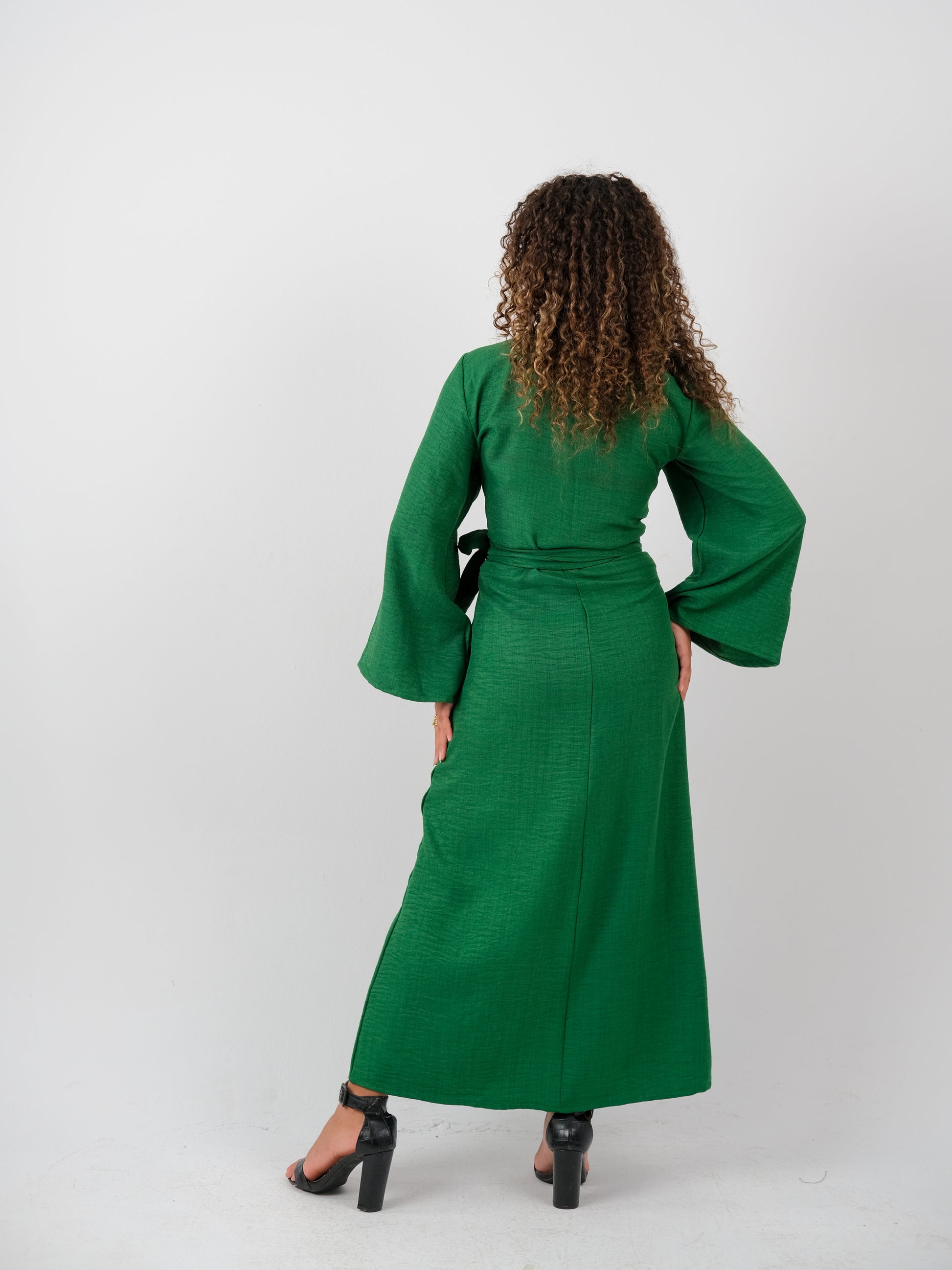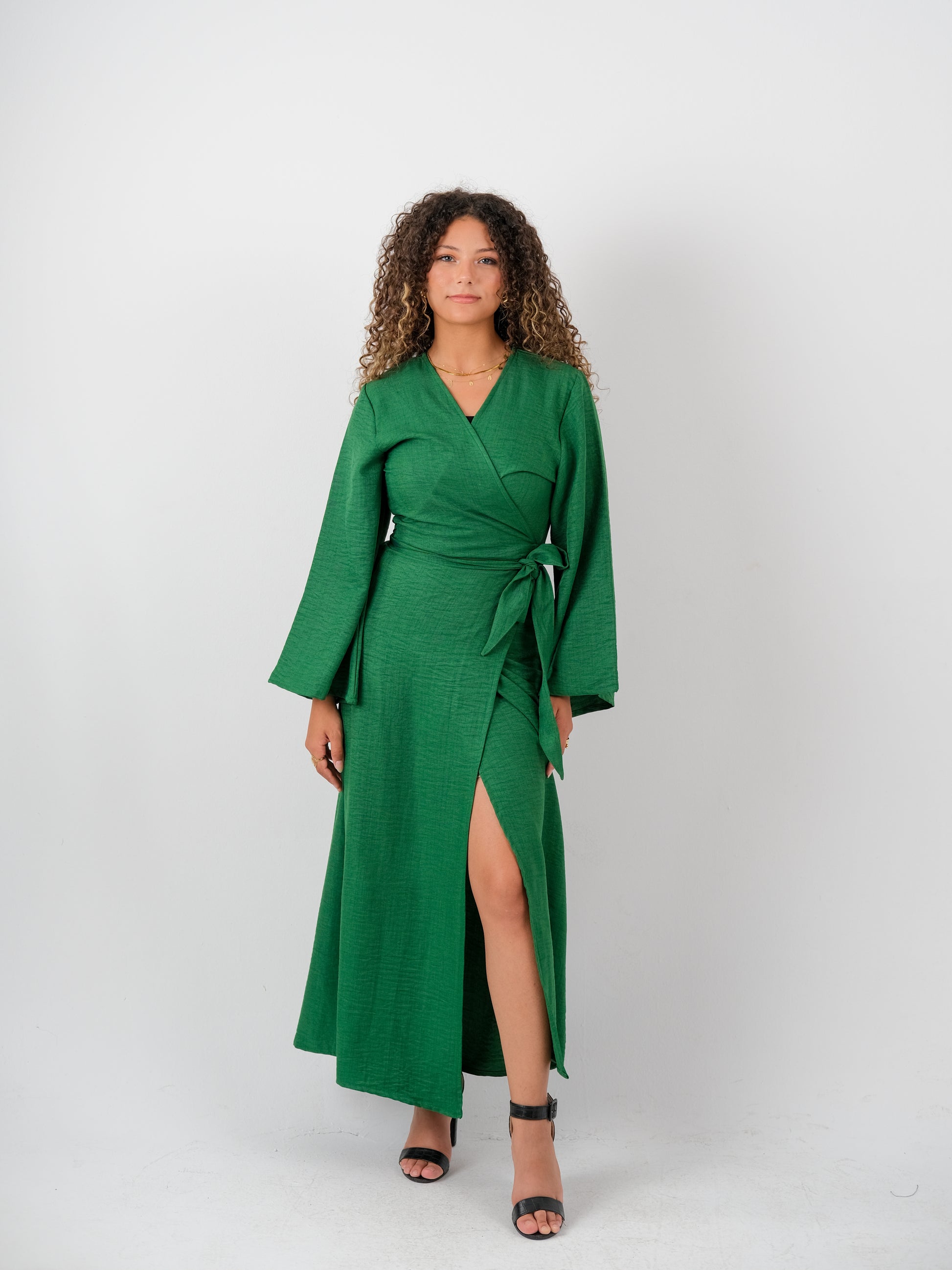 This linen kimono/Dress is a versatile addition to any wardrobe. Its unique design allows it to be worn as both a kimono and a wrap dress, perfect for a variety of events. Made of high-quality linen, it offers comfort and style in equal measure. Embrace both fashion and function with this must-have piece.