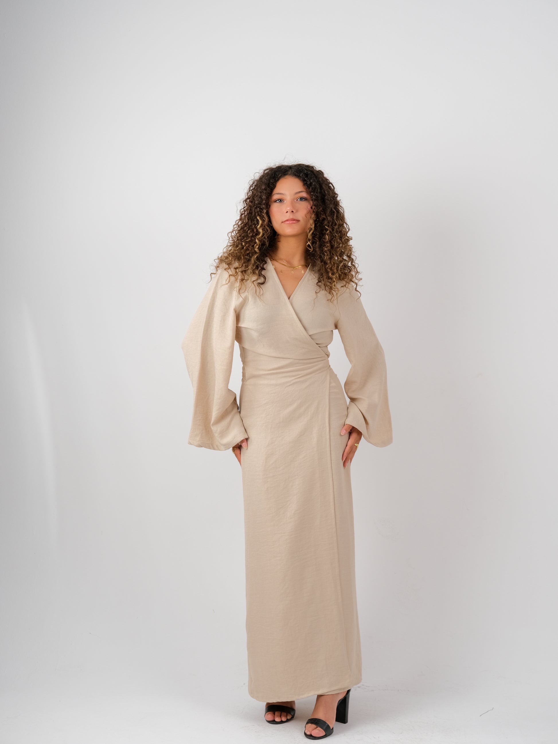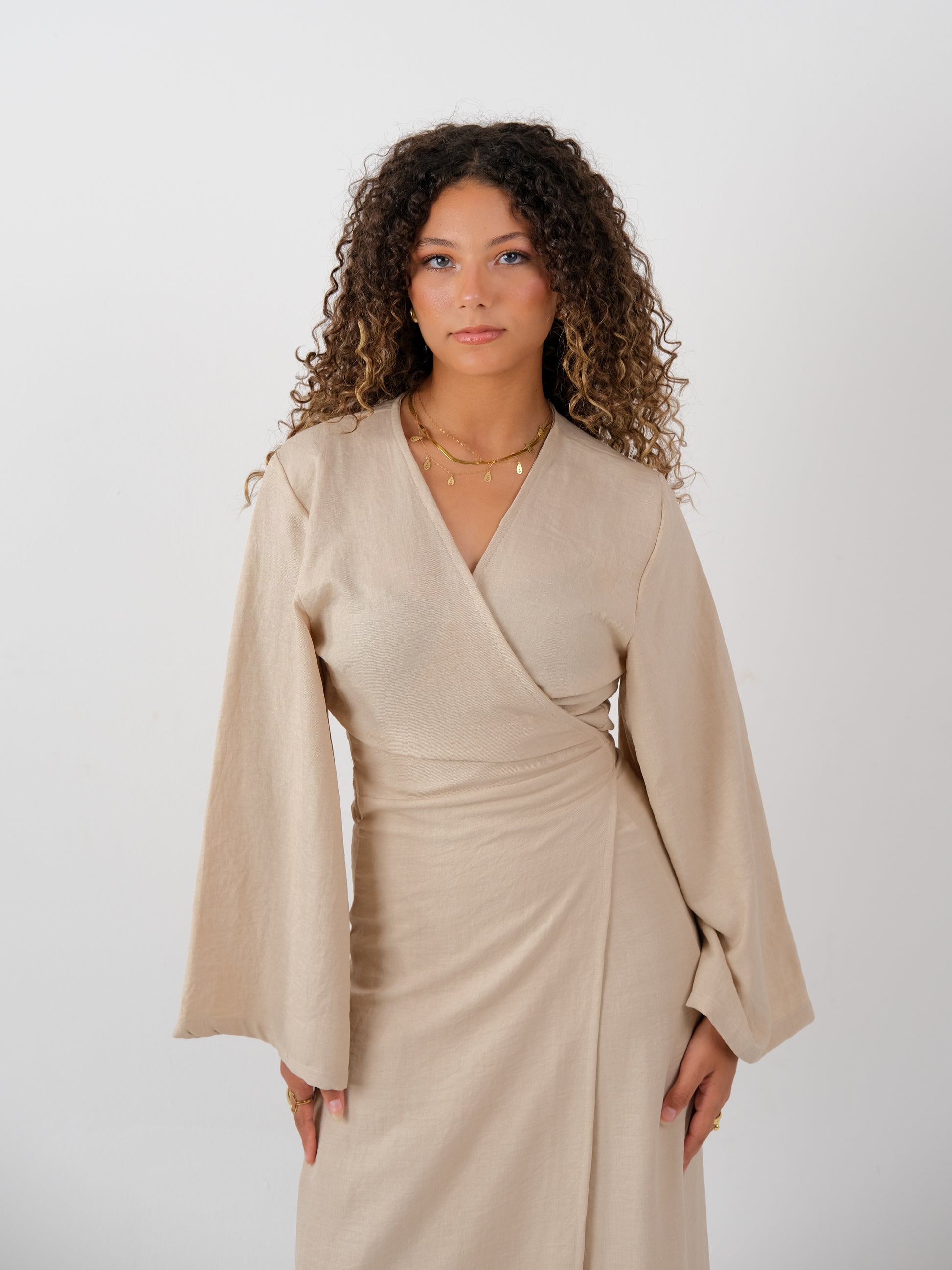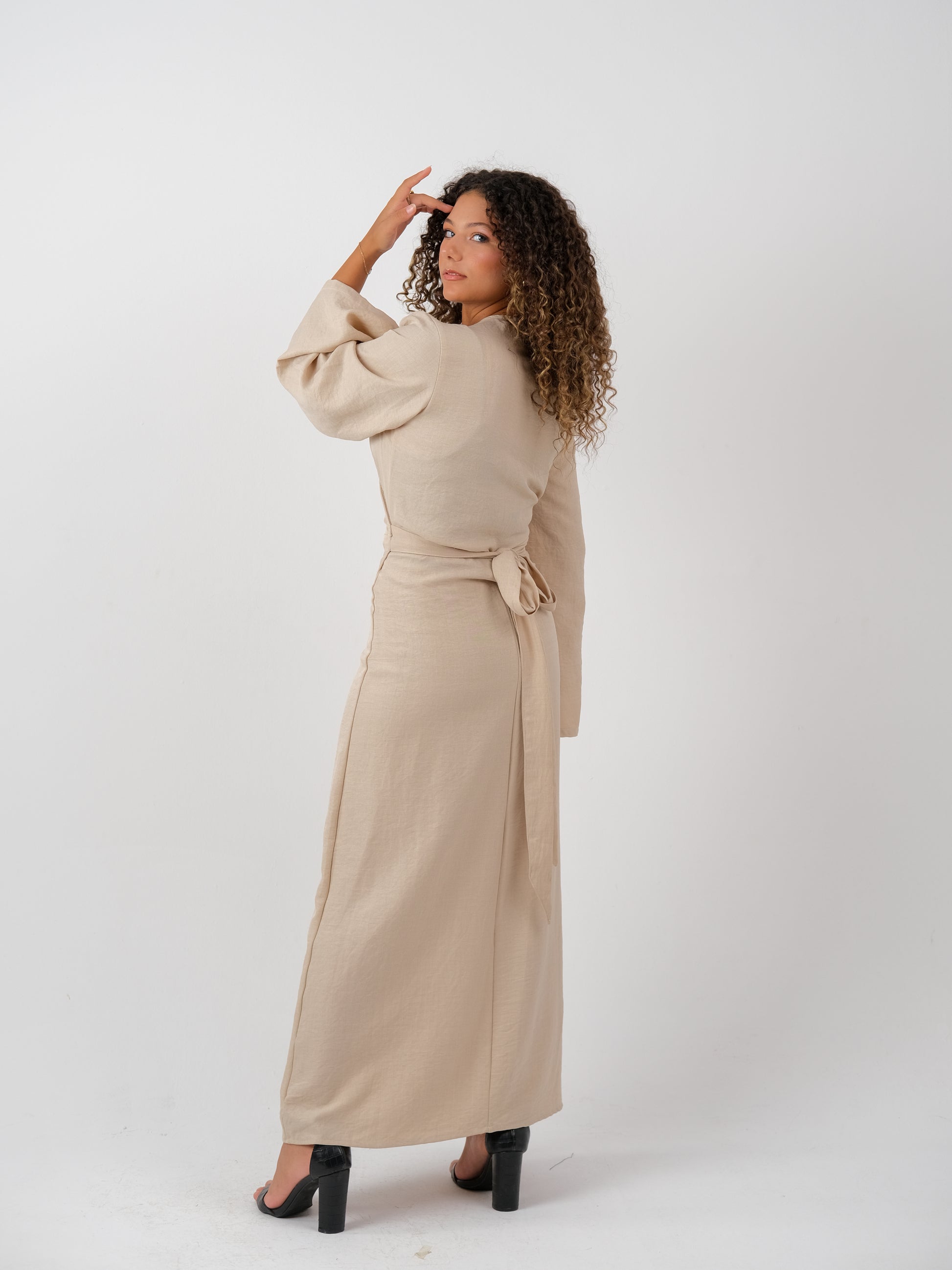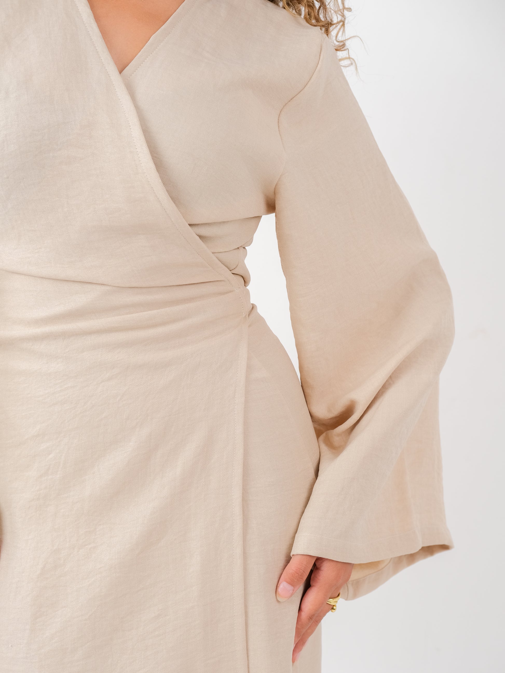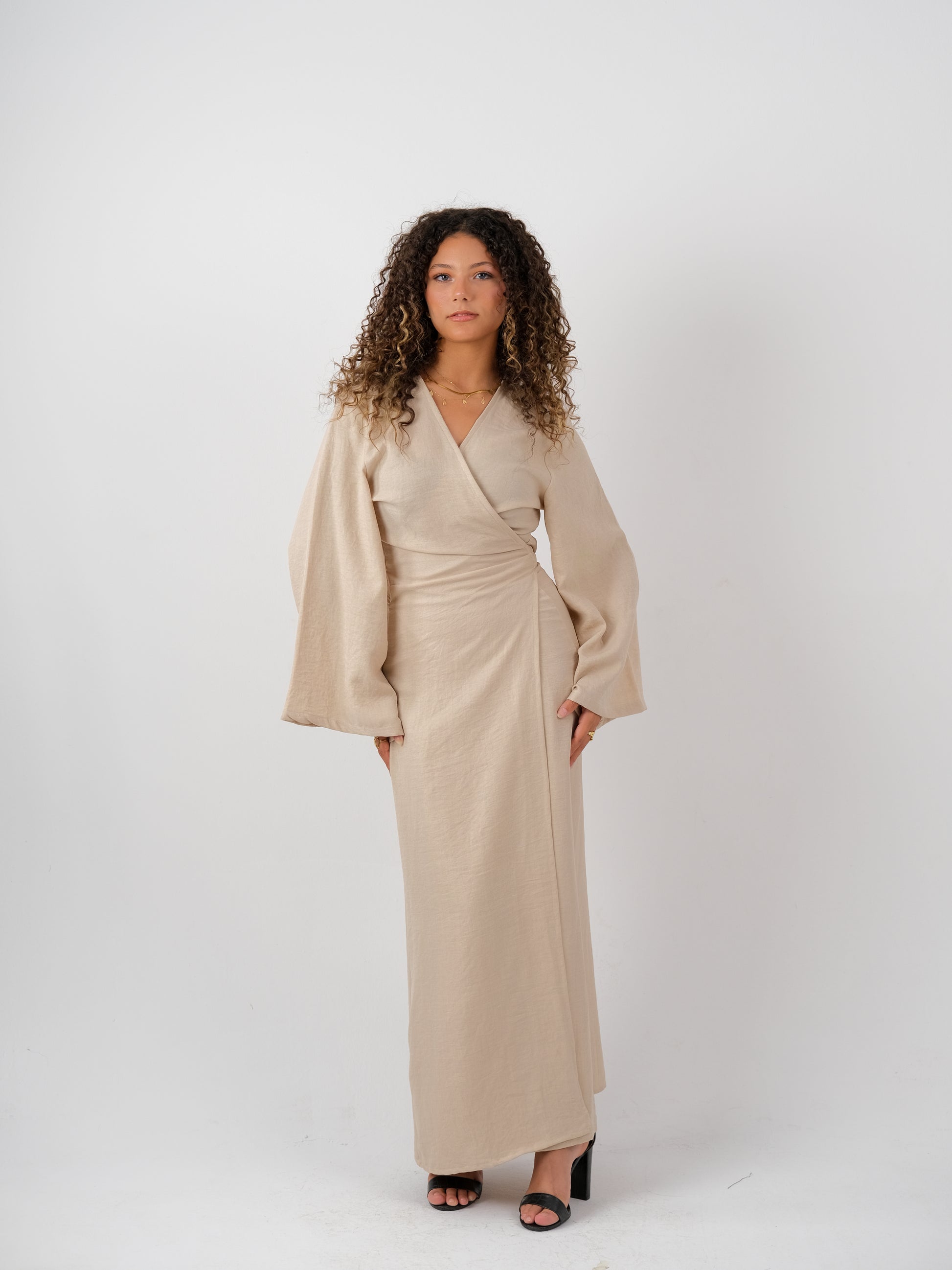 This linen kimono/Dress is a versatile addition to any wardrobe. Its unique design allows it to be worn as both a kimono and a wrap dress, perfect for a variety of events. Made of high-quality linen, it offers comfort and style in equal measure. Embrace both fashion and function with this must-have piece.