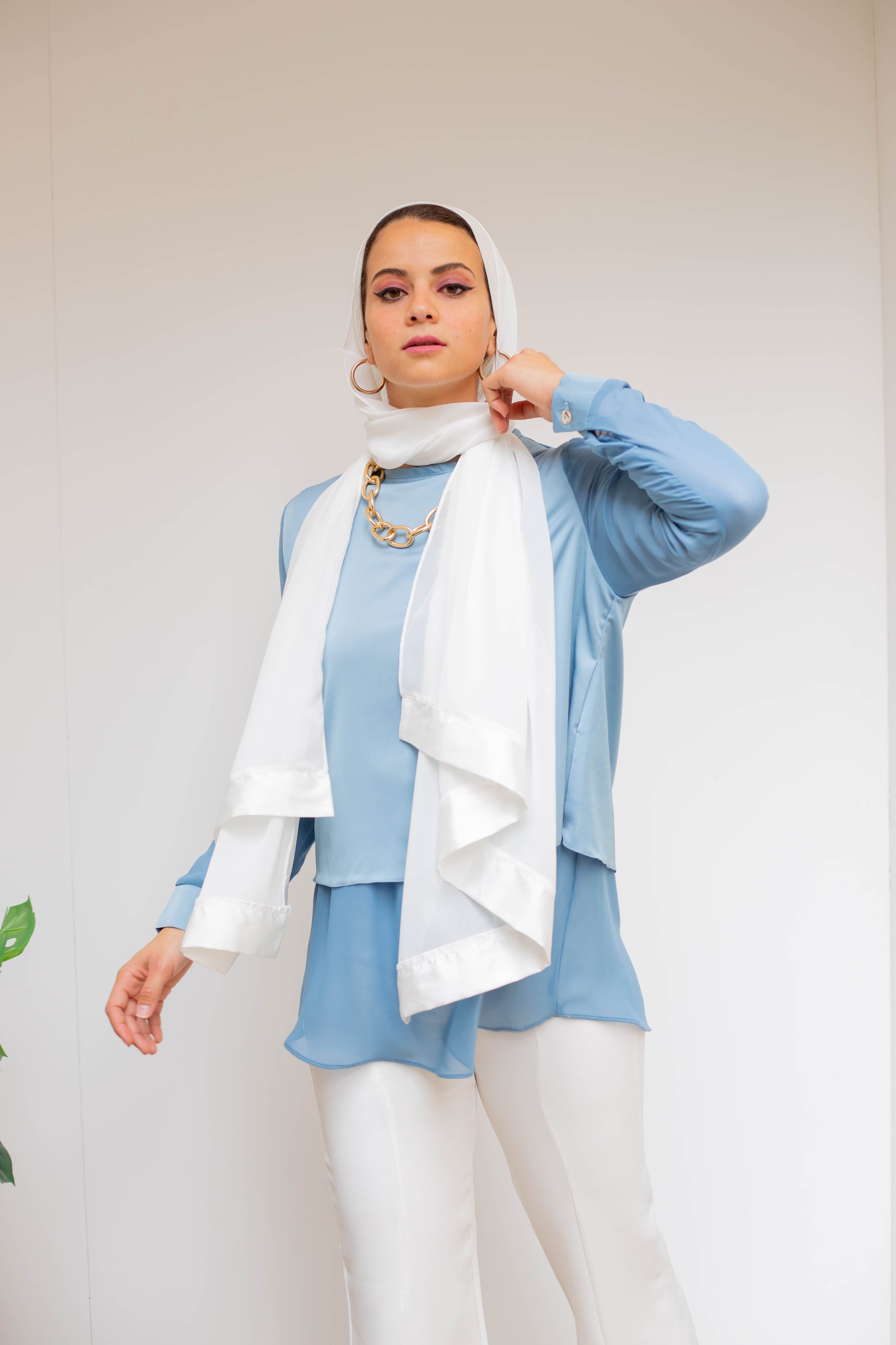 Upgrade your wardrobe with our Satin x Chiffon Blouse. Crafted from a luxurious satin chiffon fabric, this blouse is perfect for any occasion, day or night. Available in 3 beautiful colors white, light blue, and black. It is a versatile piece that will elevate your style game.
