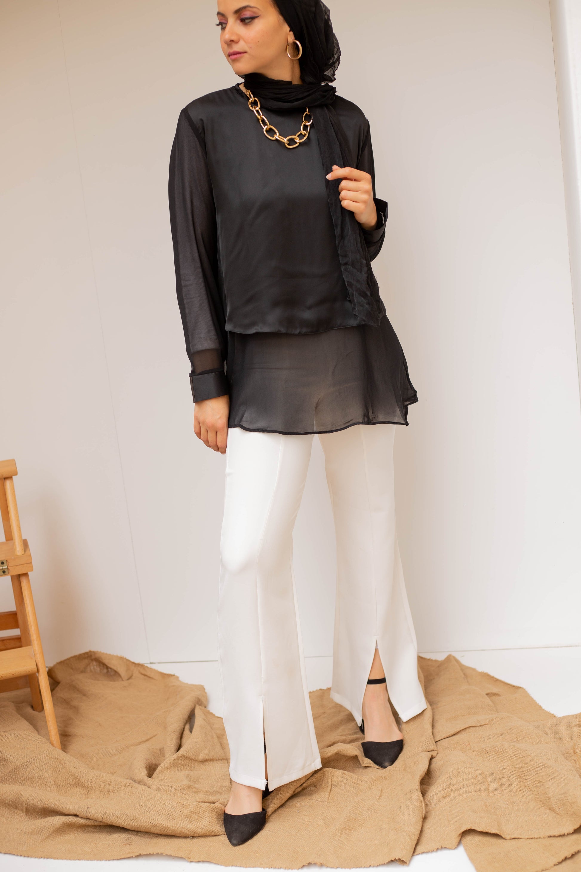 Satin x Chiffon Blouse