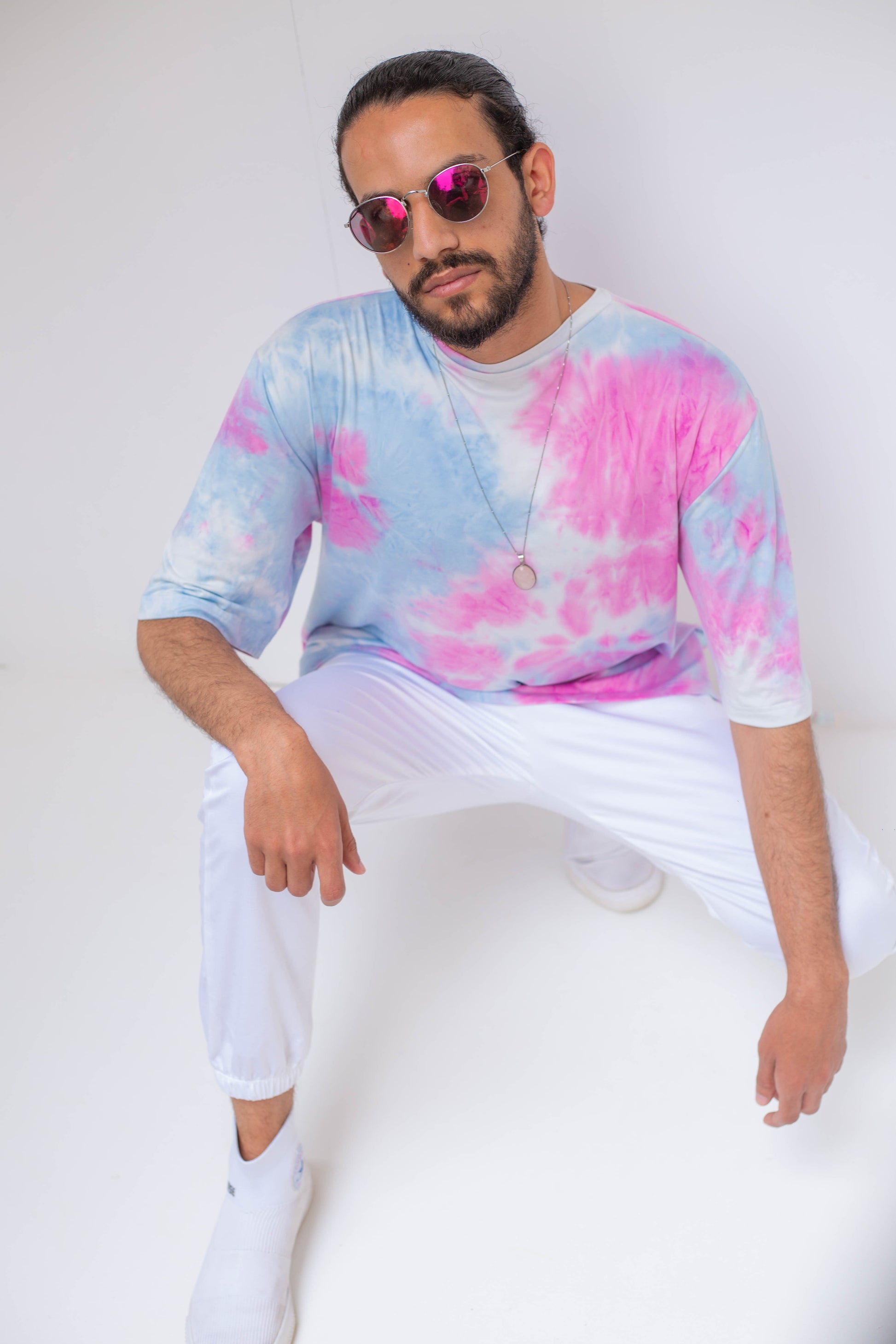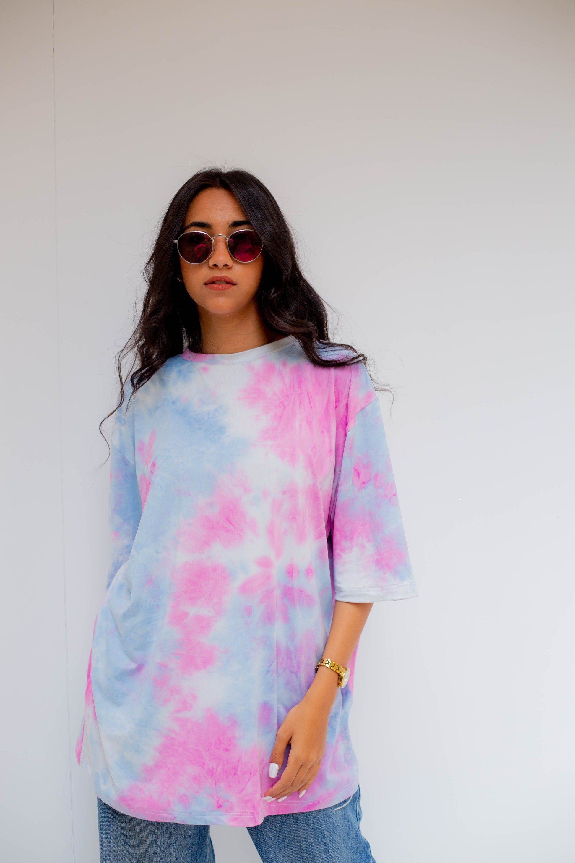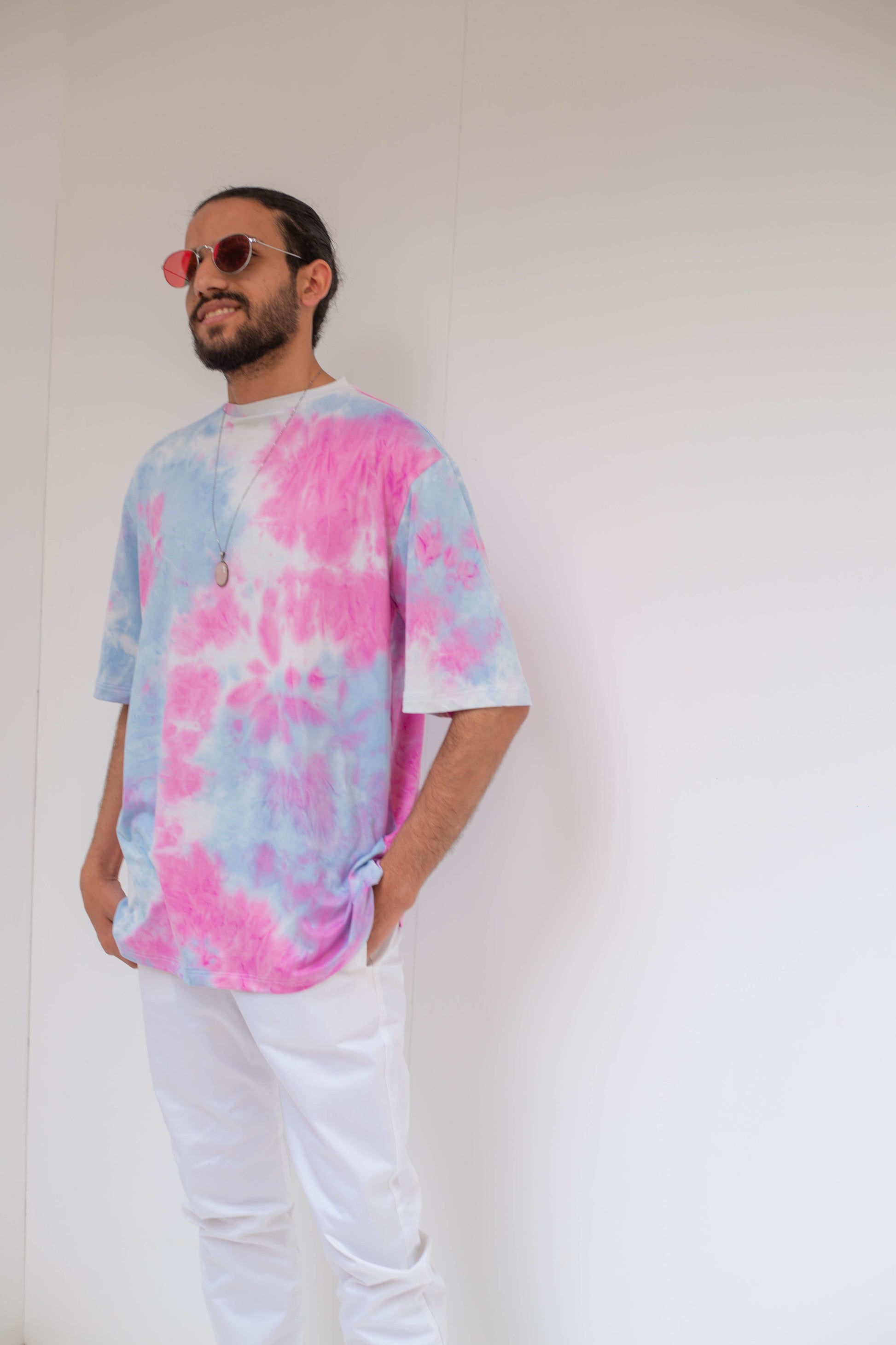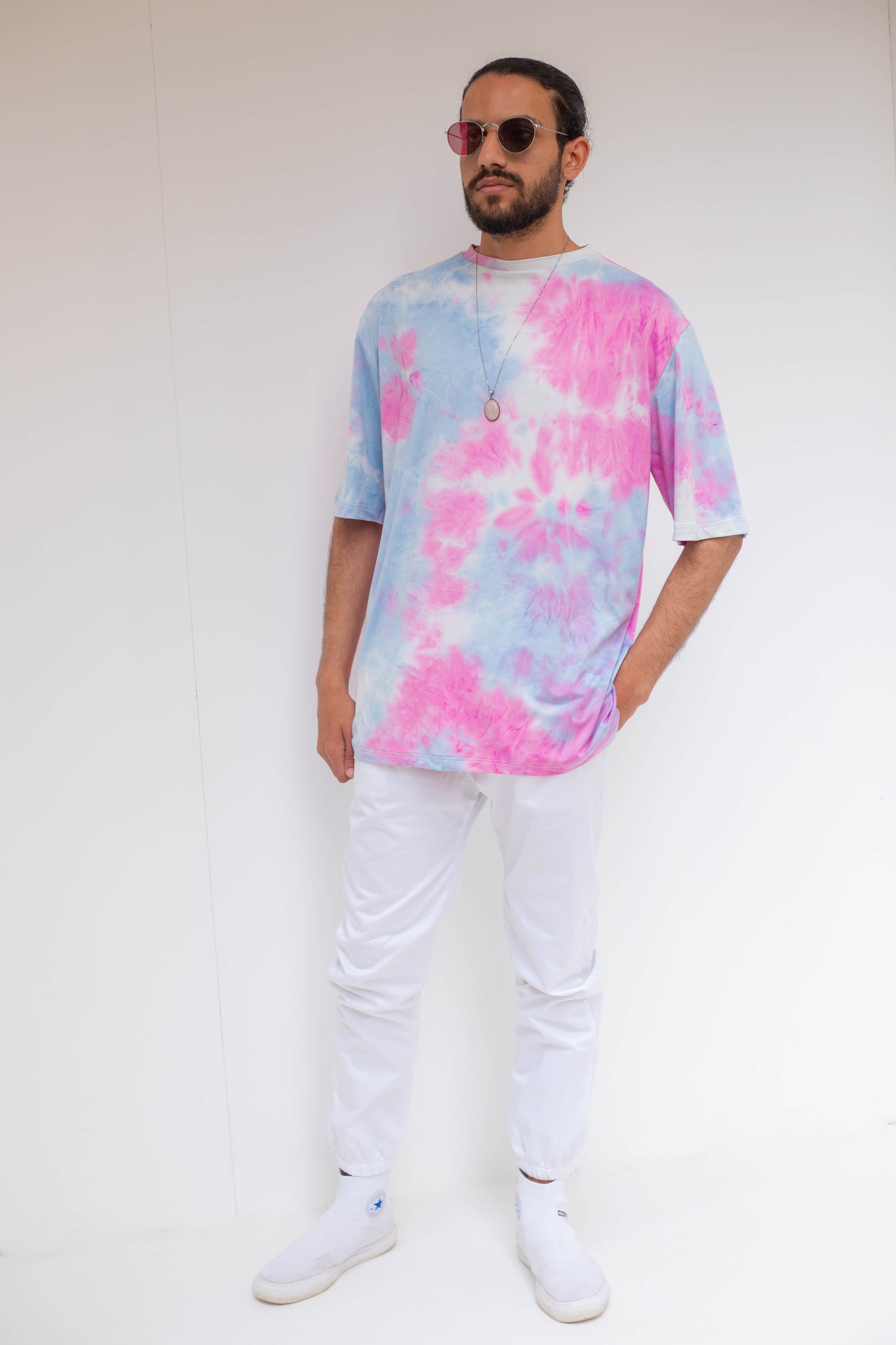 This unisex tie-dye t-shirt is the perfect addition to any wardrobe. Made with a unique tie-dye pattern in shades of gray and pink, this shirt is sure to make a statement. The soft, comfortable fabric and trendy design provide both style and comfort, making it a must-have item.