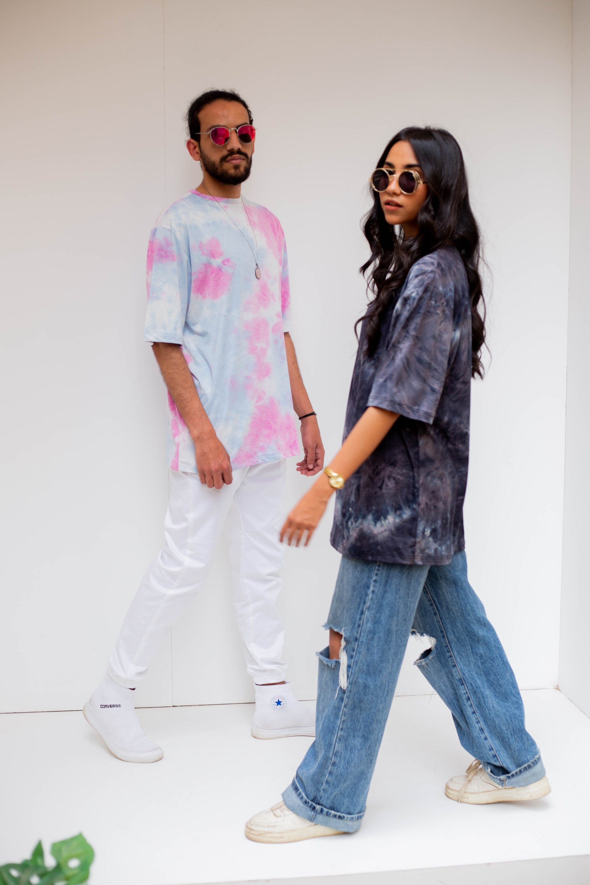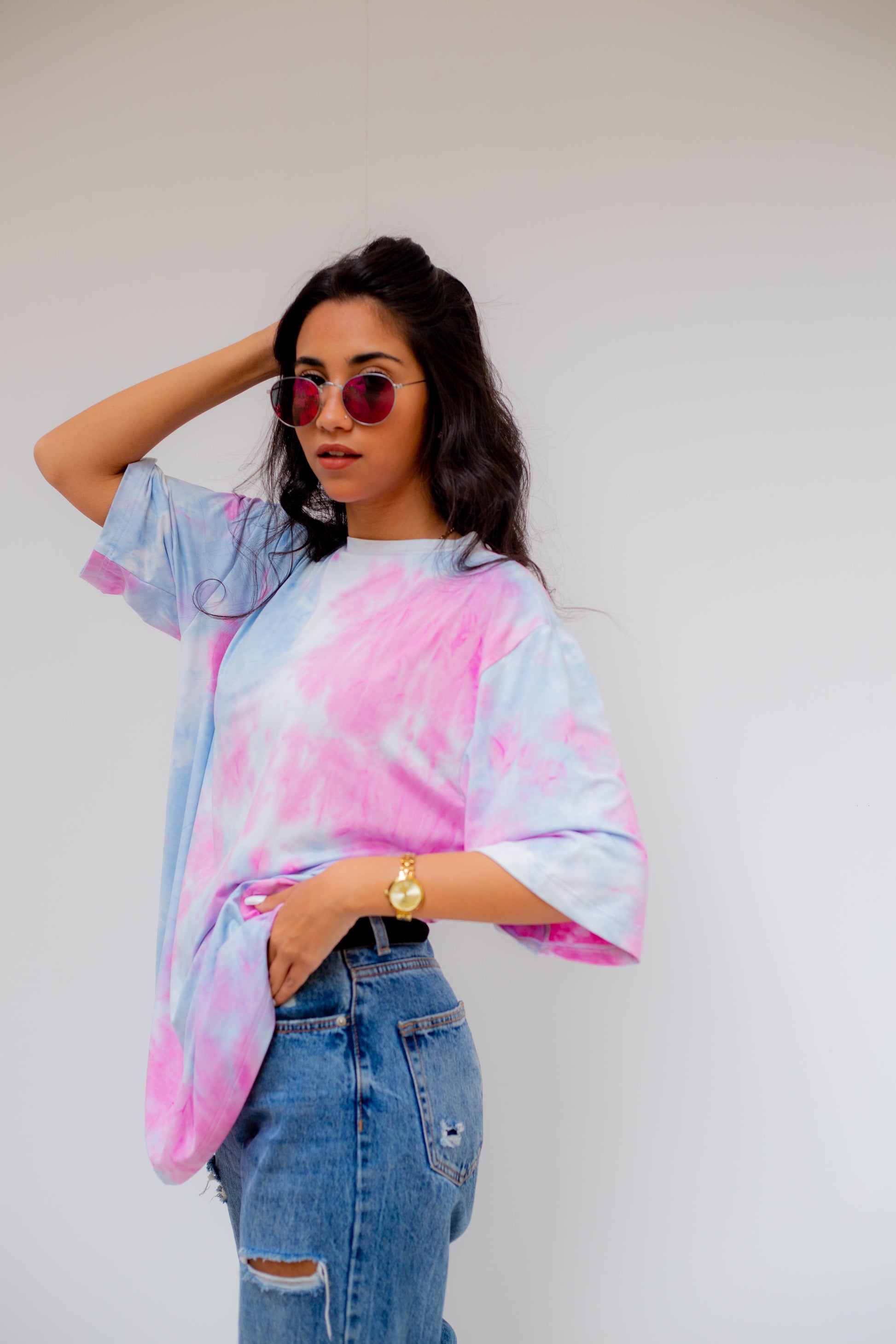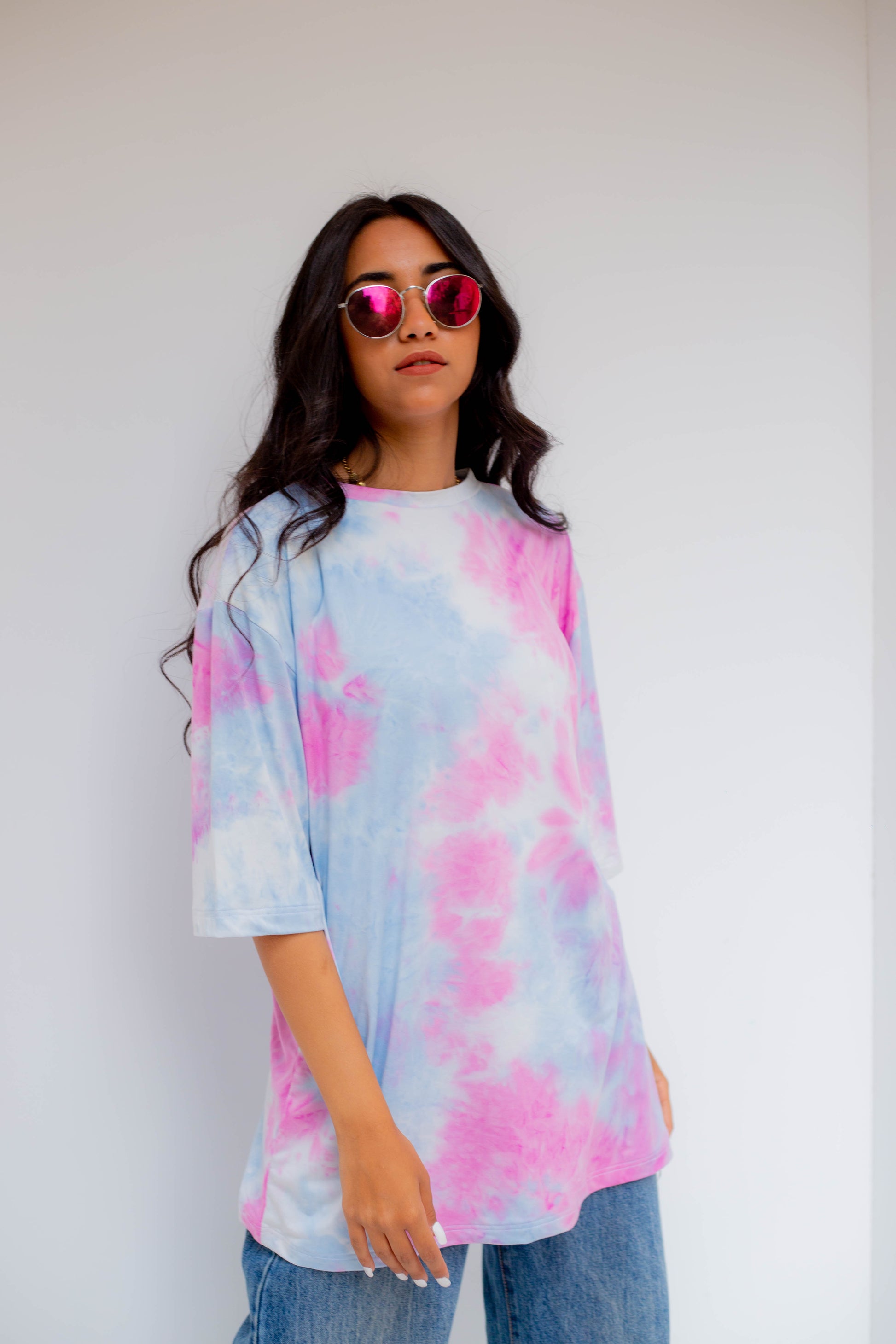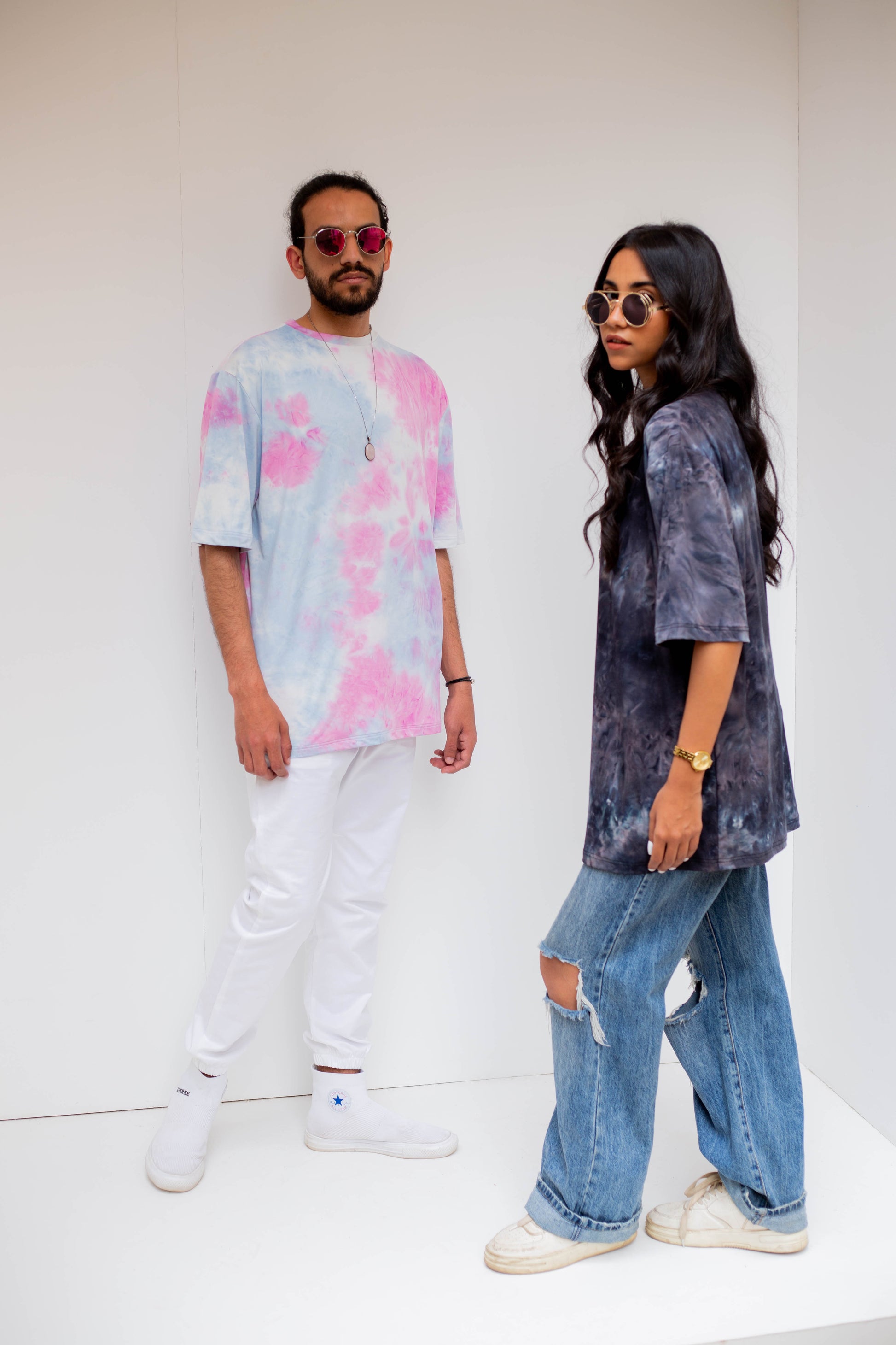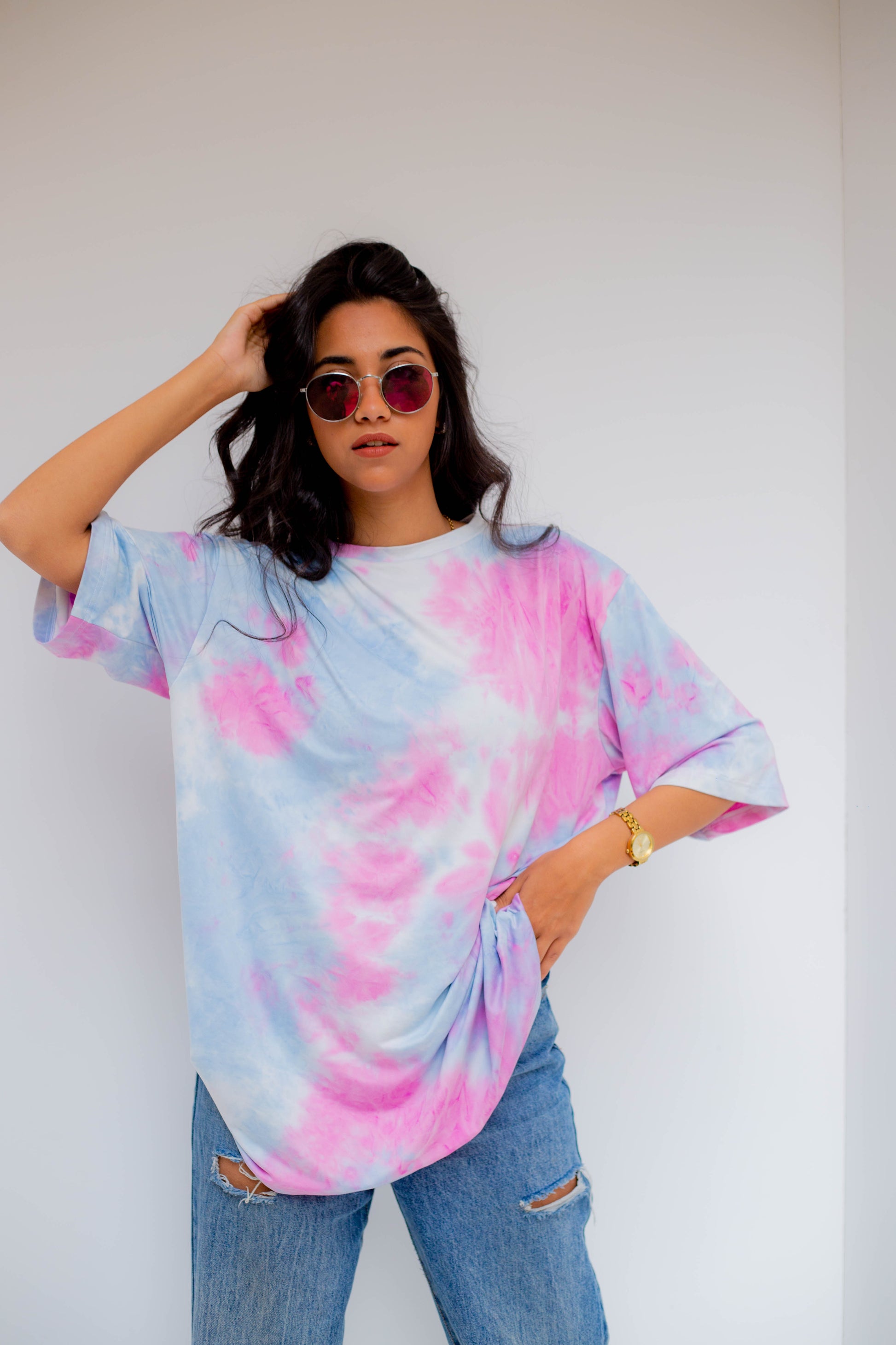 This unisex tie-dye t-shirt is the perfect addition to any wardrobe. Made with a unique tie-dye pattern in shades of gray and pink, this shirt is sure to make a statement. The soft, comfortable fabric and trendy design provide both style and comfort, making it a must-have item.