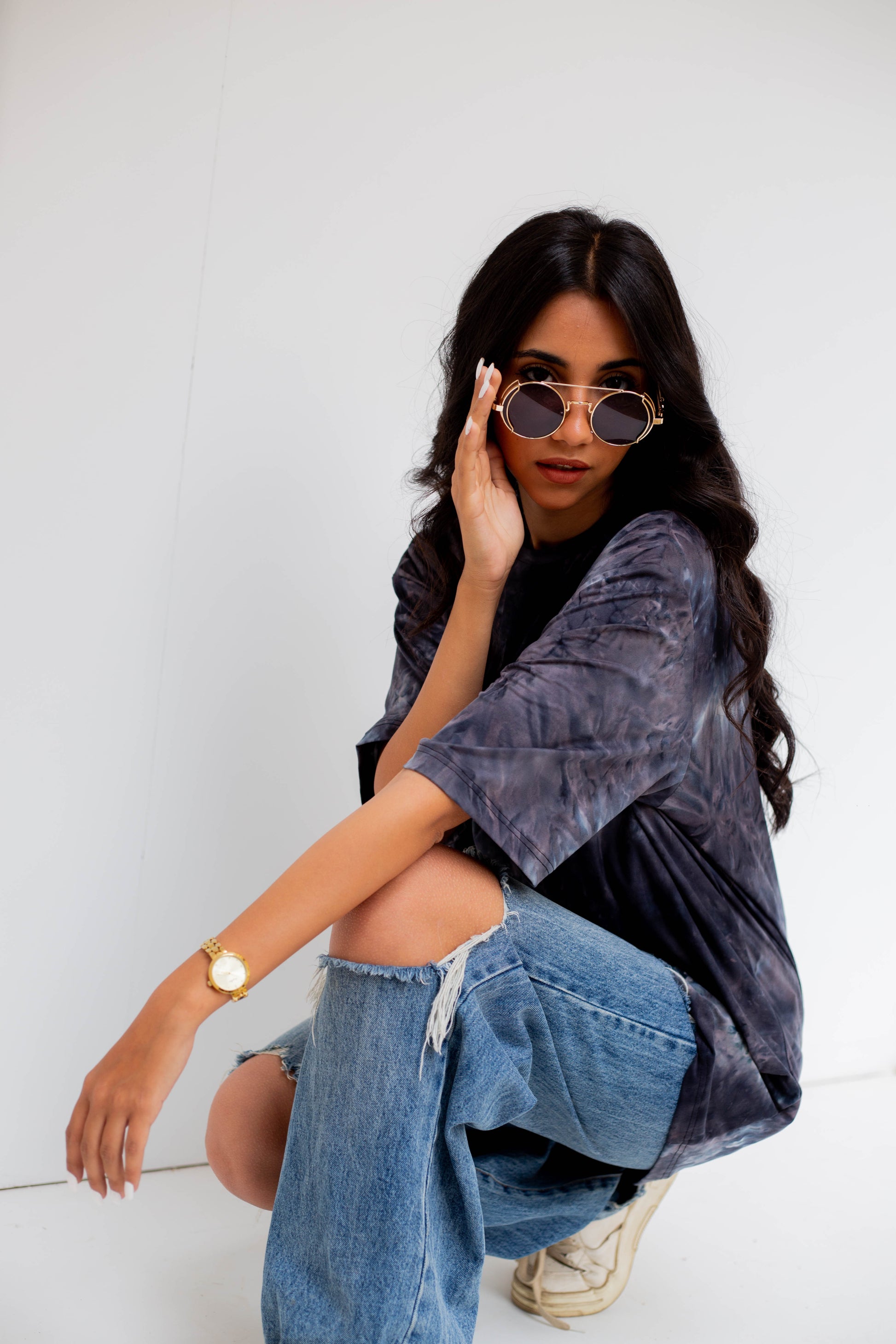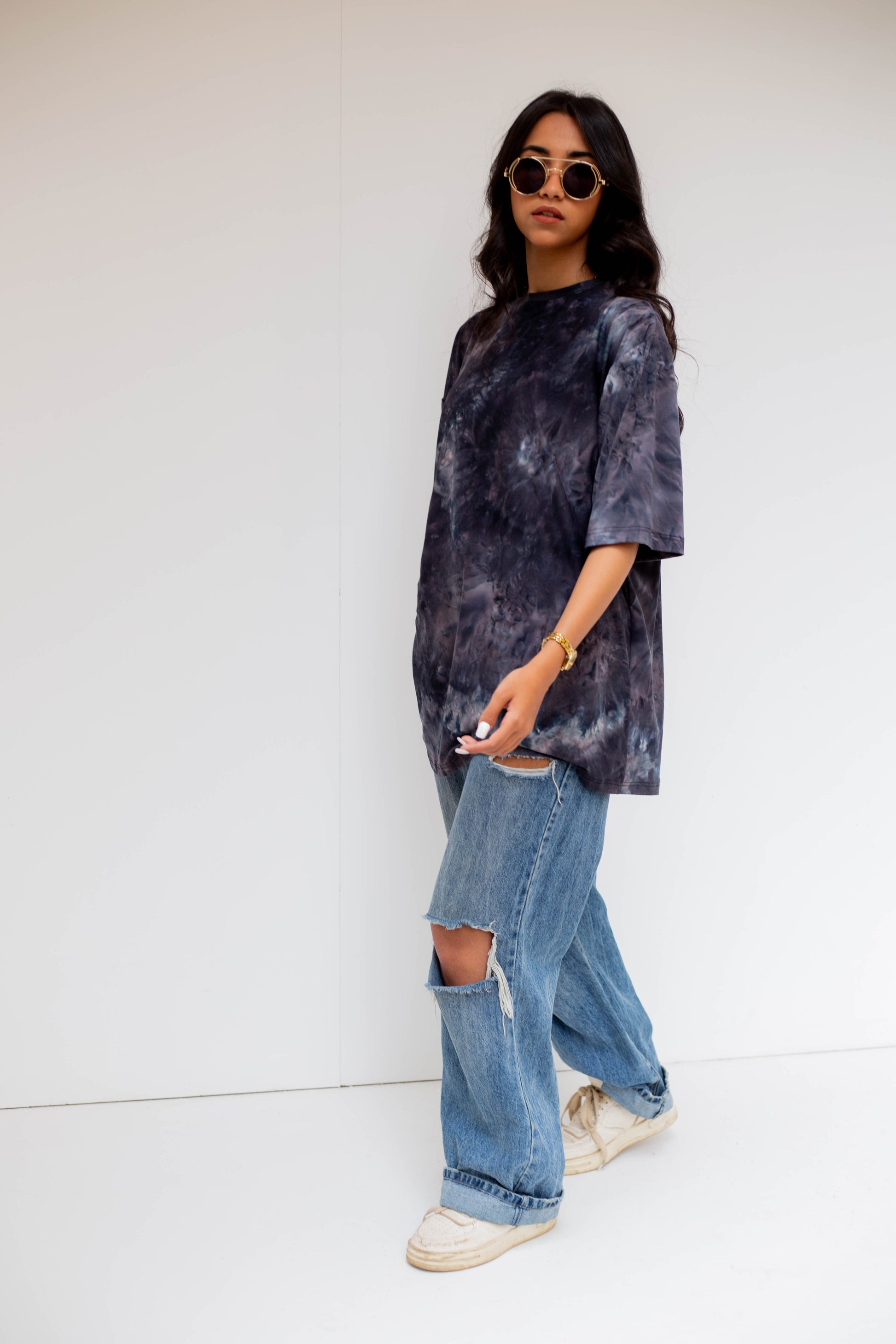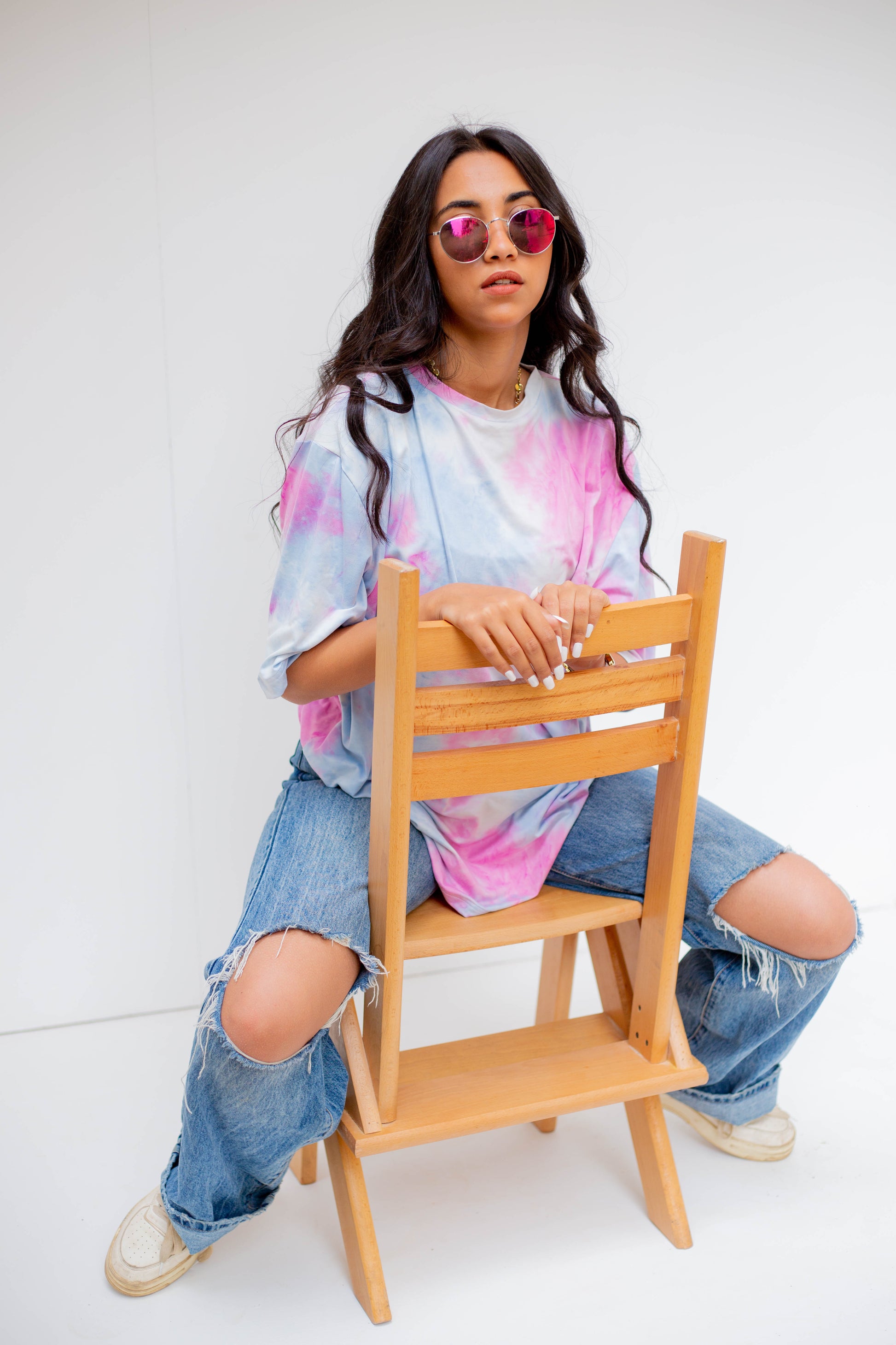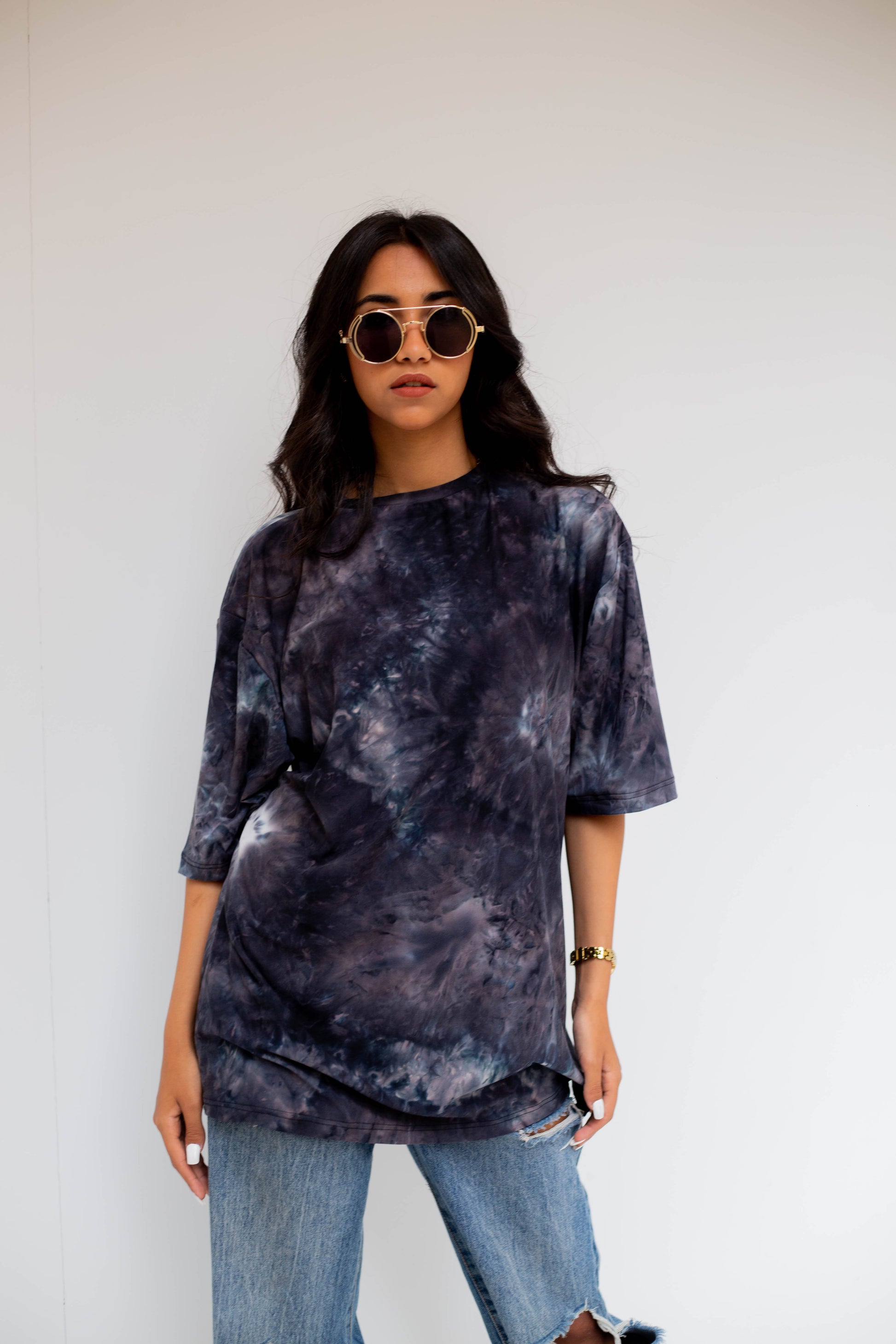 This unisex tie-dye t-shirt is the perfect addition to any wardrobe. Made with a unique tie-dye pattern in shades of gray and pink, this shirt is sure to make a statement. The soft, comfortable fabric and trendy design provide both style and comfort, making it a must-have item.