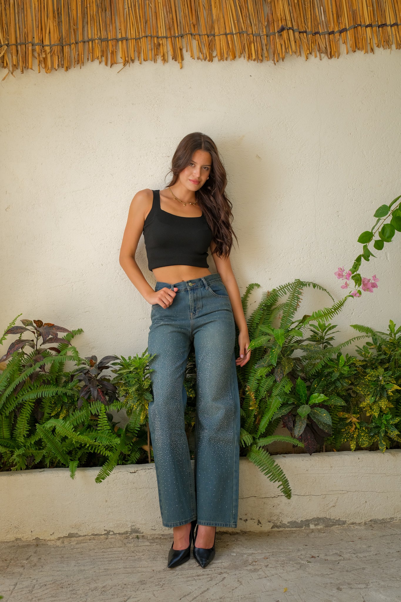 Shine with subtle sparkle in our star-embellished straight-leg jeans 🌟