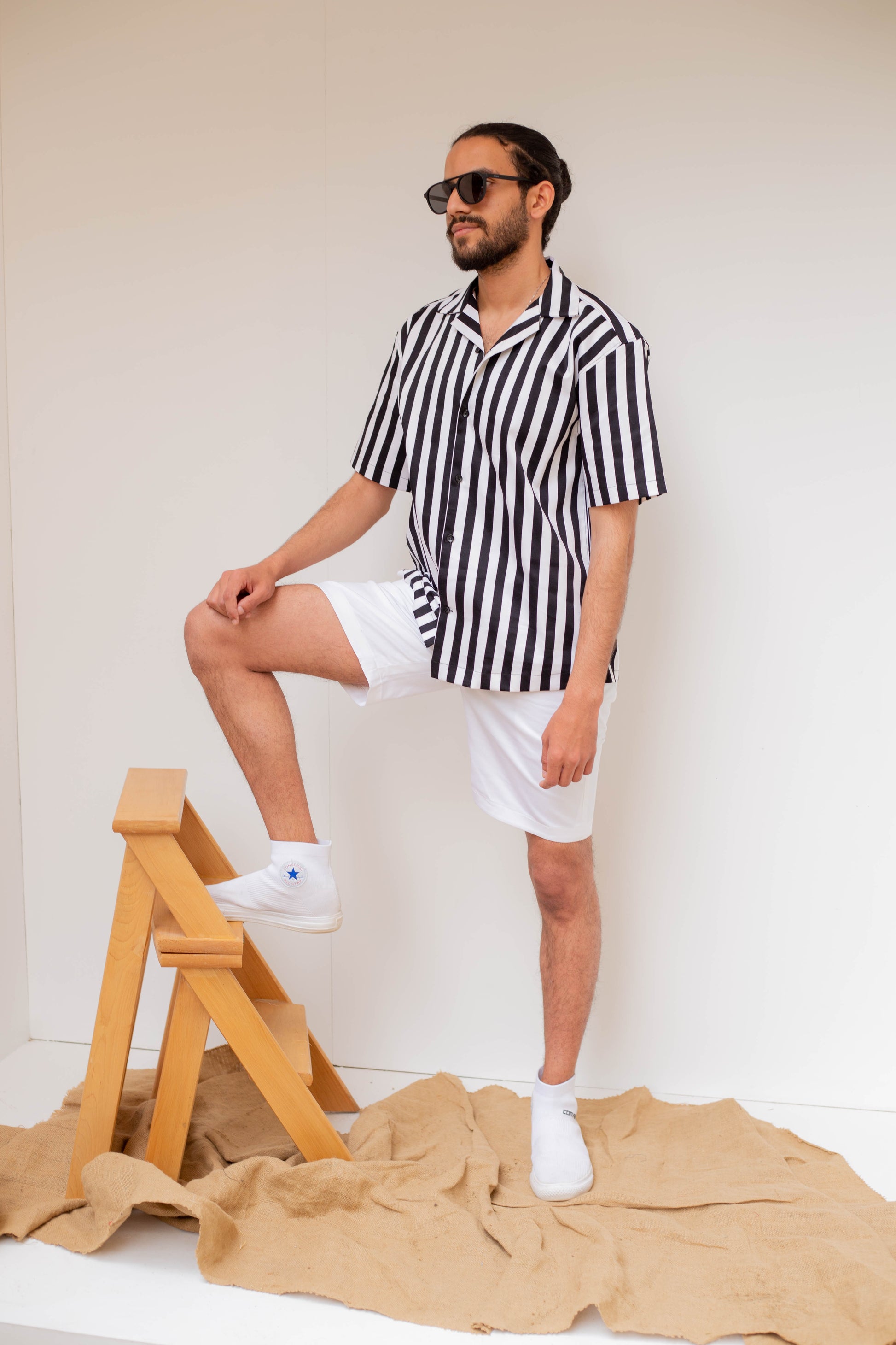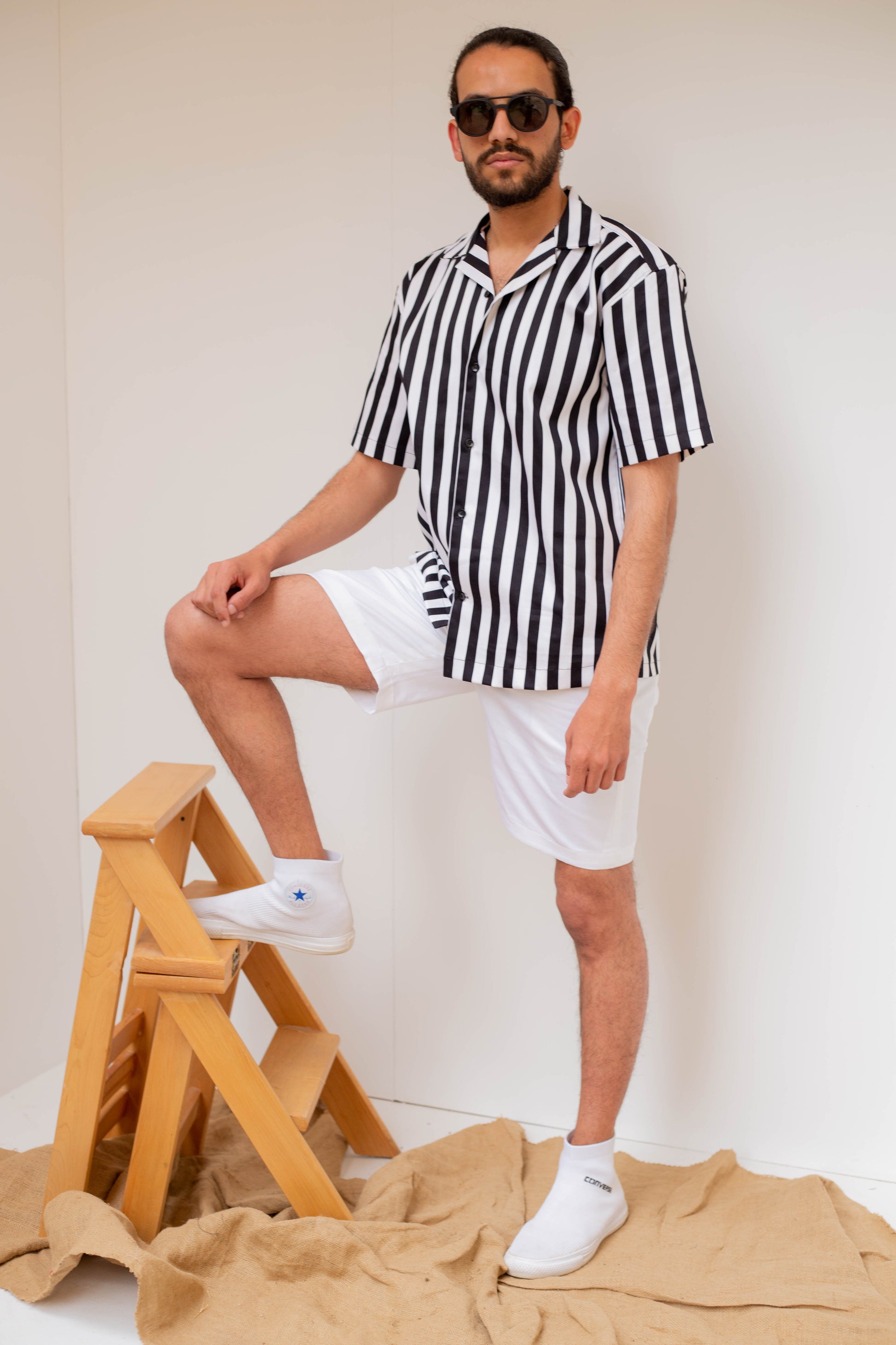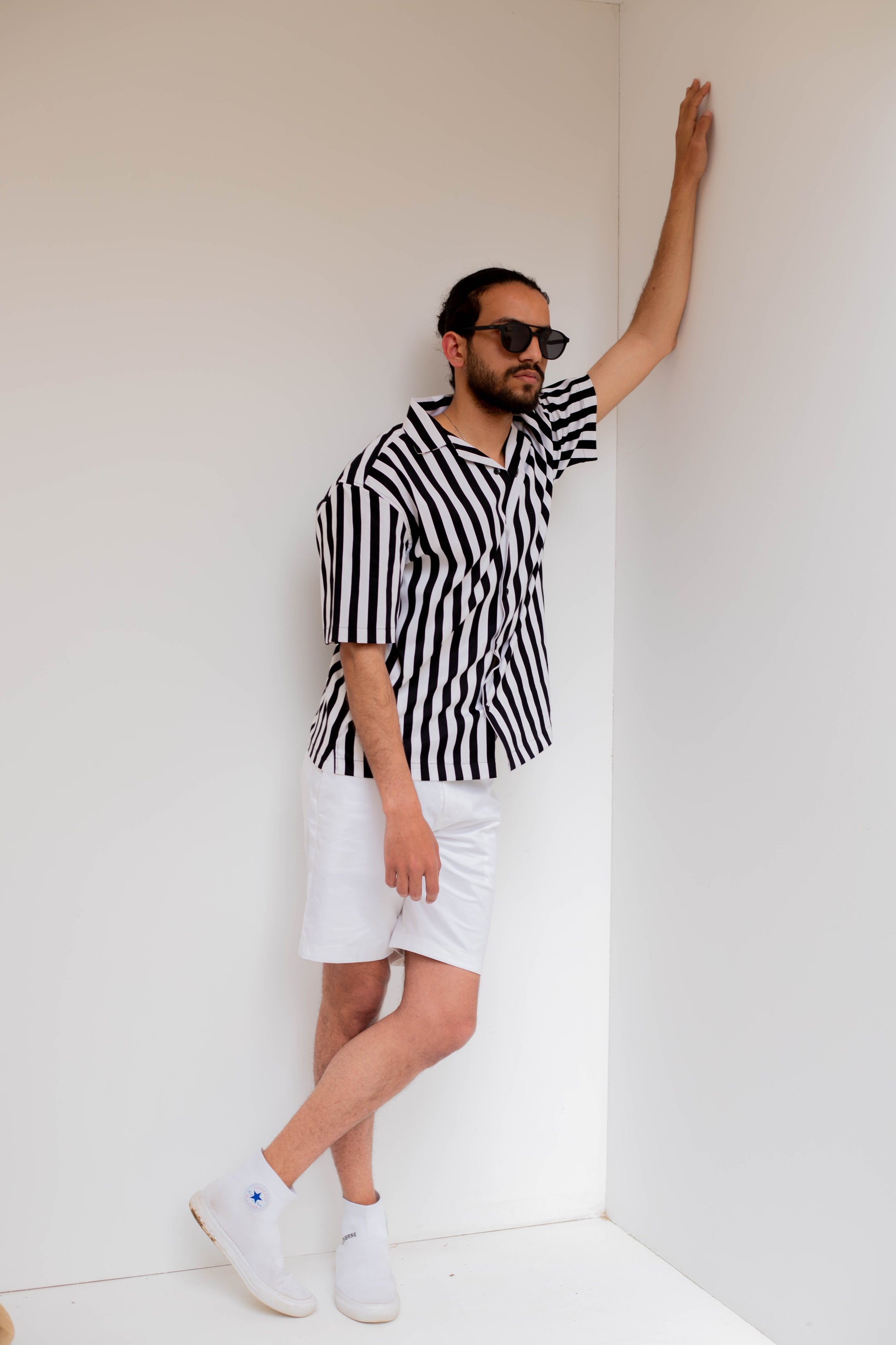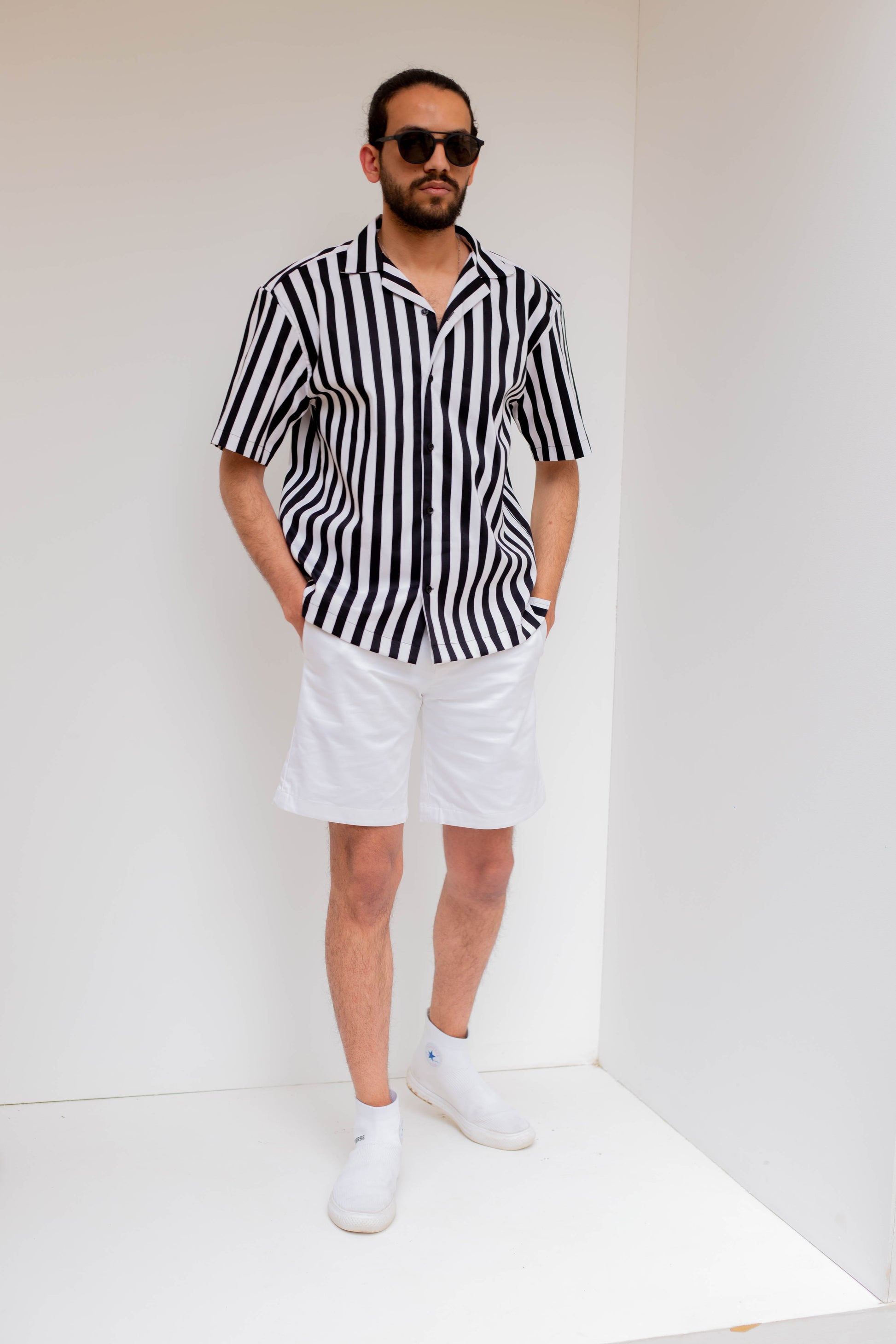 Stay stylish and comfortable with our black and white stripe shirt for men. Made with the perfect fabric, this shirt is chic and versatile. Perfect for many occasions, add this timeless piece to your wardrobe.