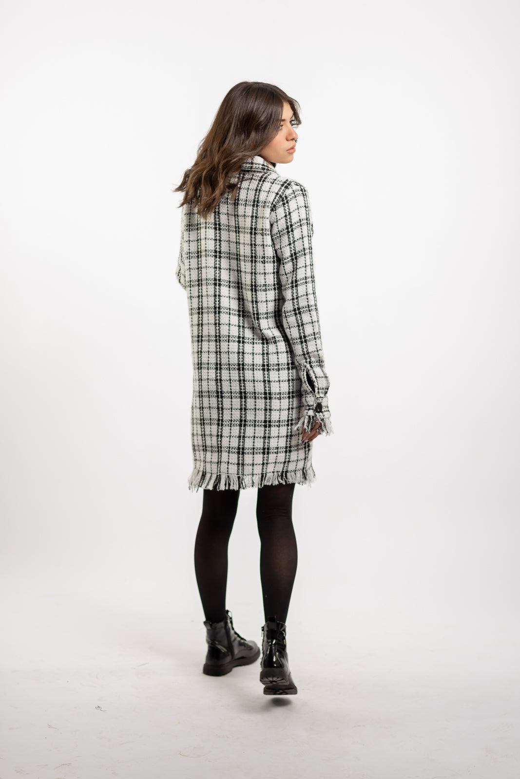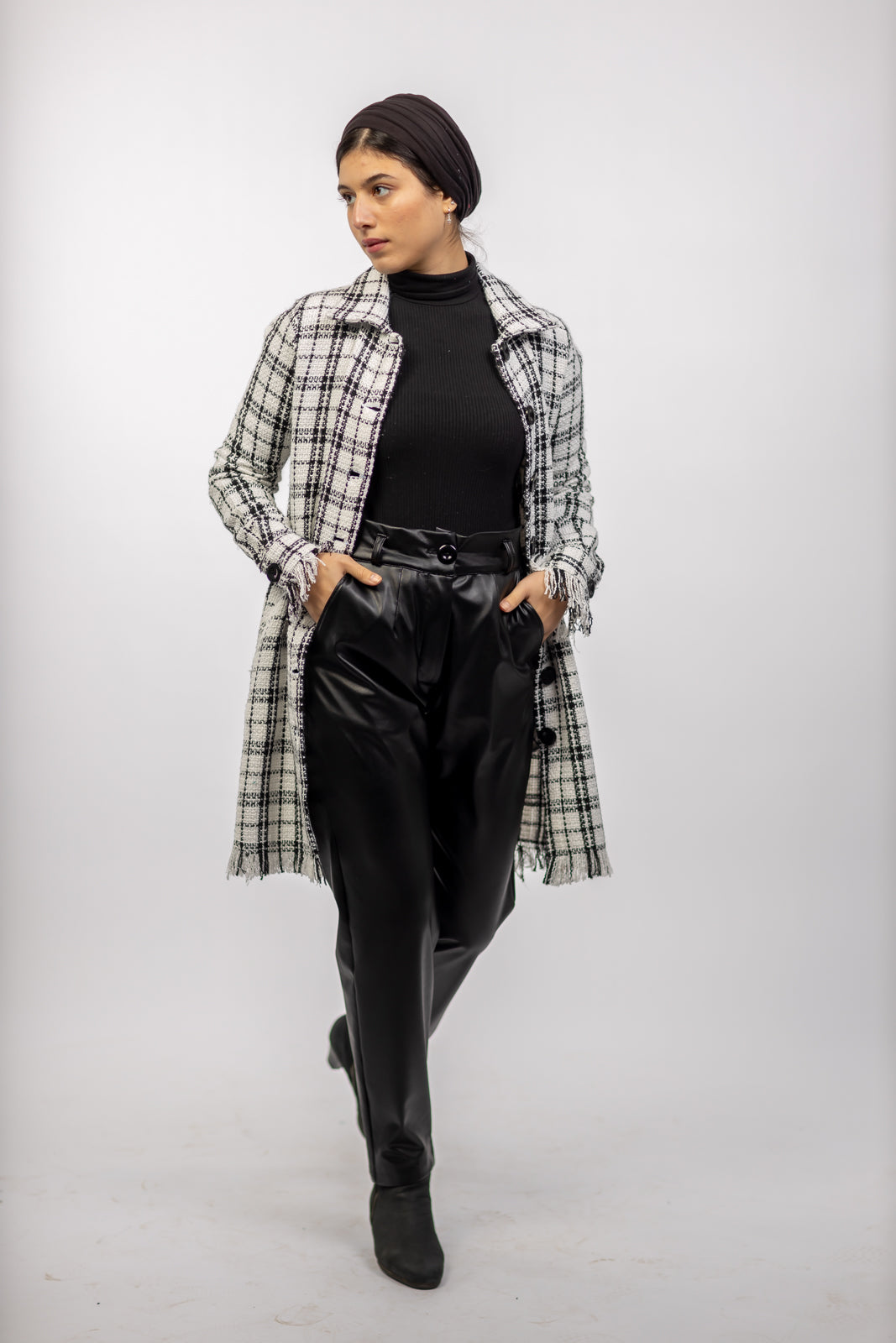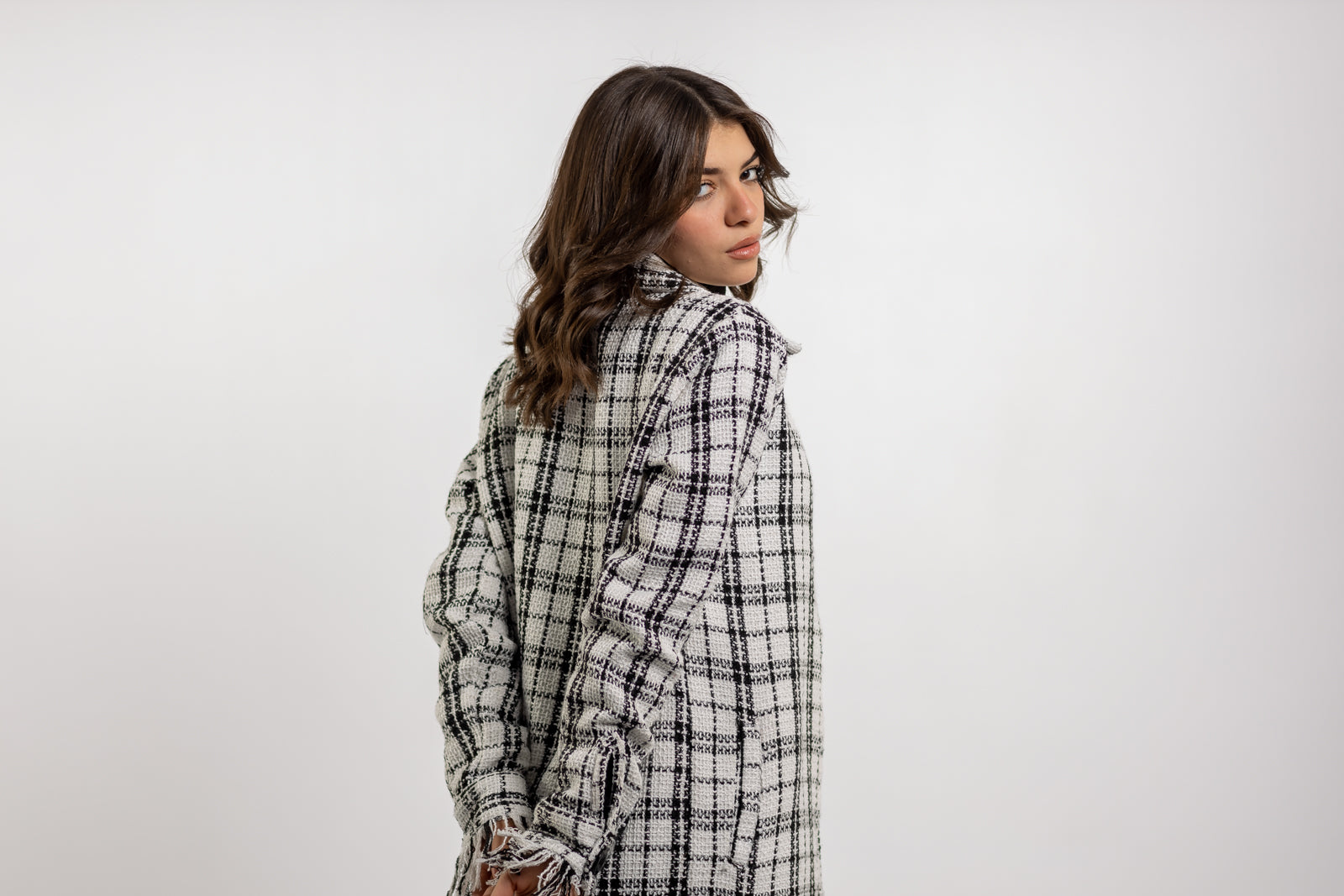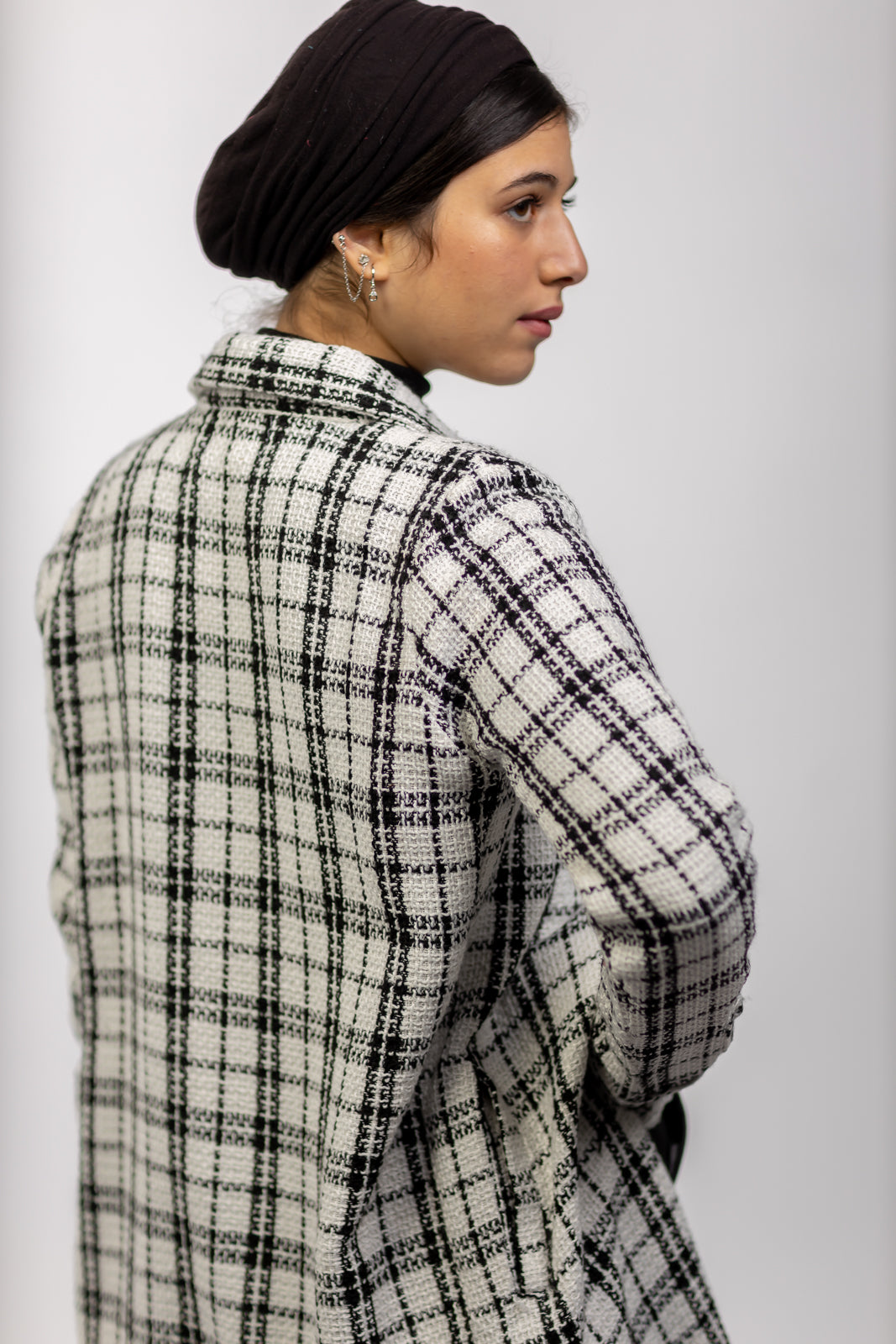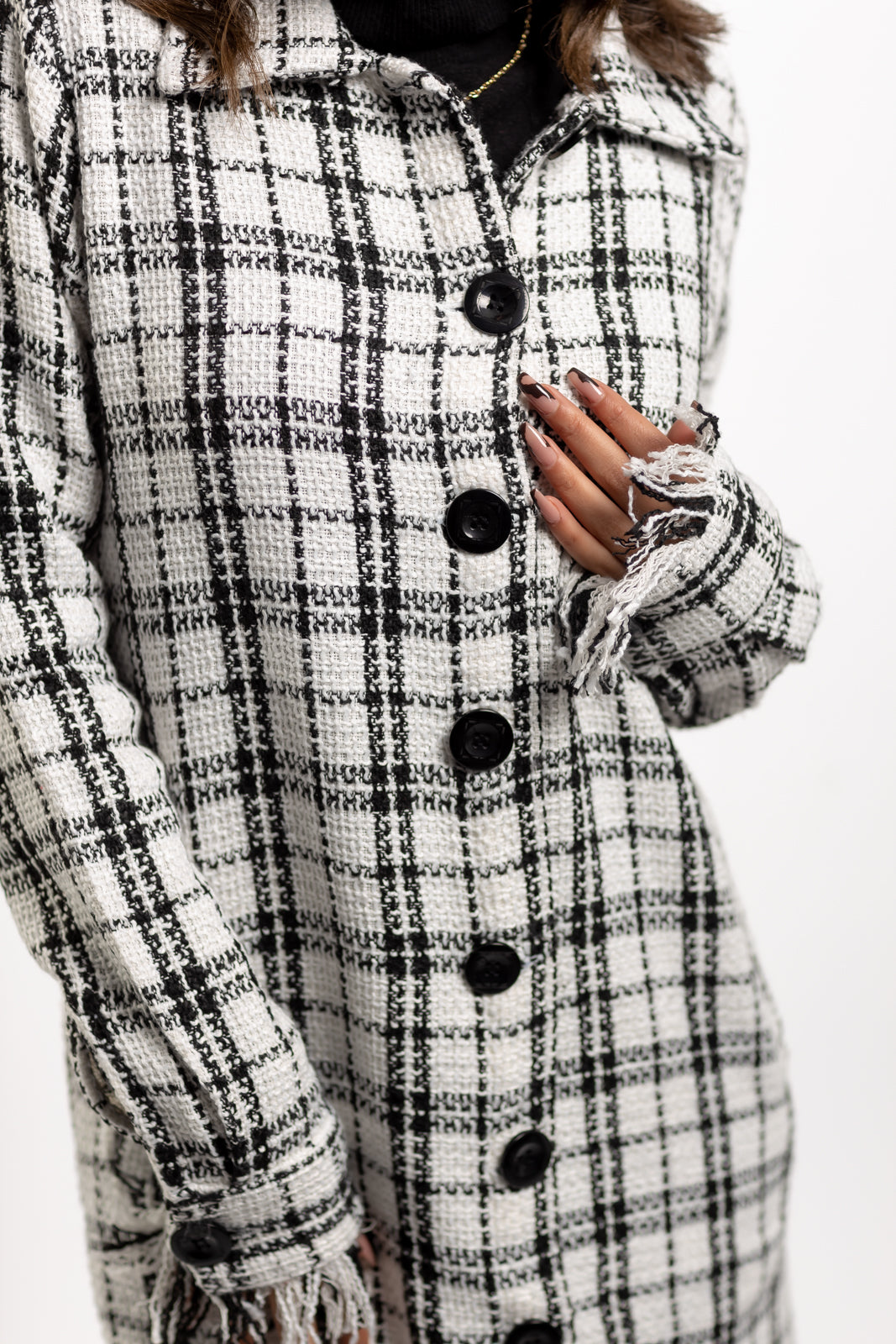 Stay warm and stylish with our Long Checkered Wool Shirts.With a classic checkered design and soft wool material, this shirt offers both functionality and fashion. The fringe detailing adds a unique touch, making it a must-have for any wardrobe. Stay cozy and on-trend this season with our checkered wool shirt. shirt