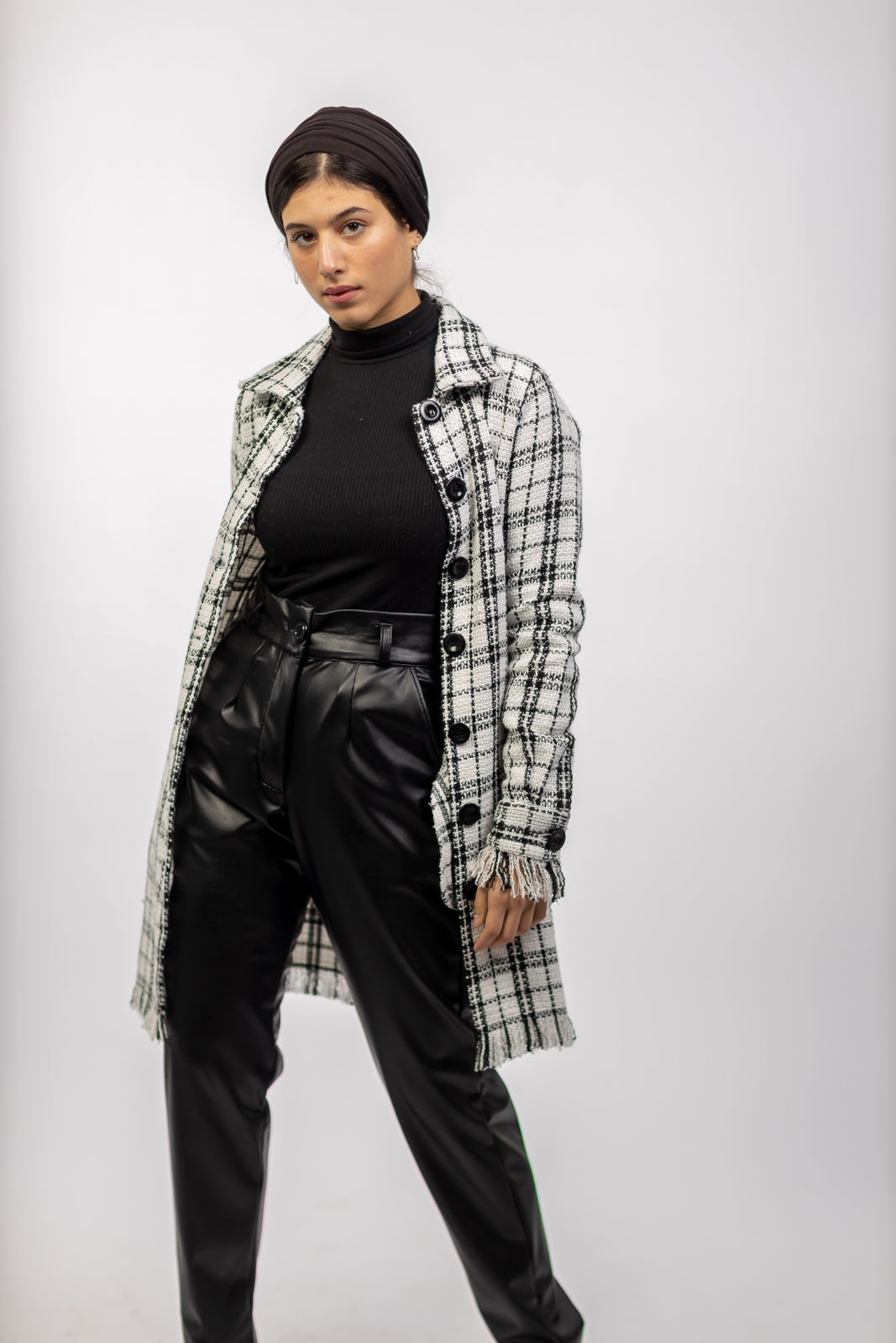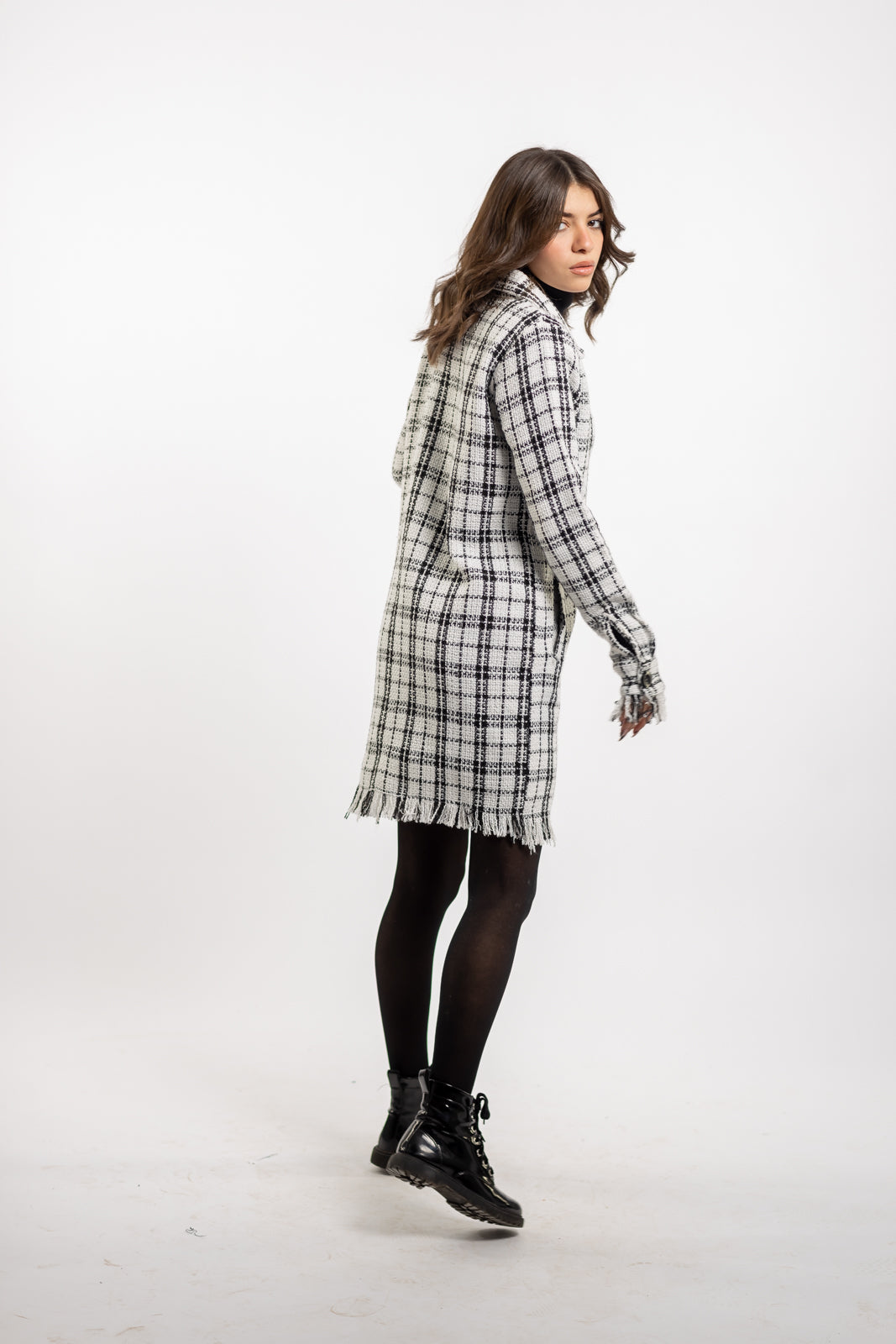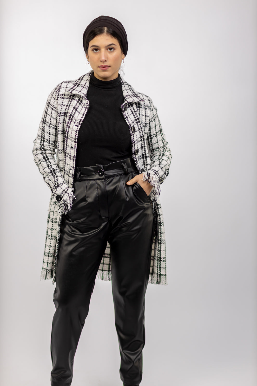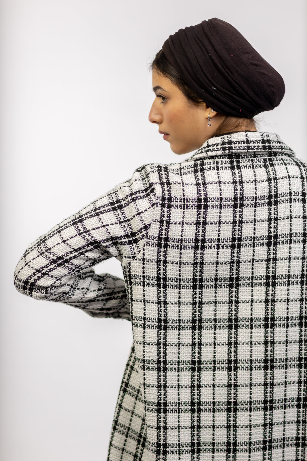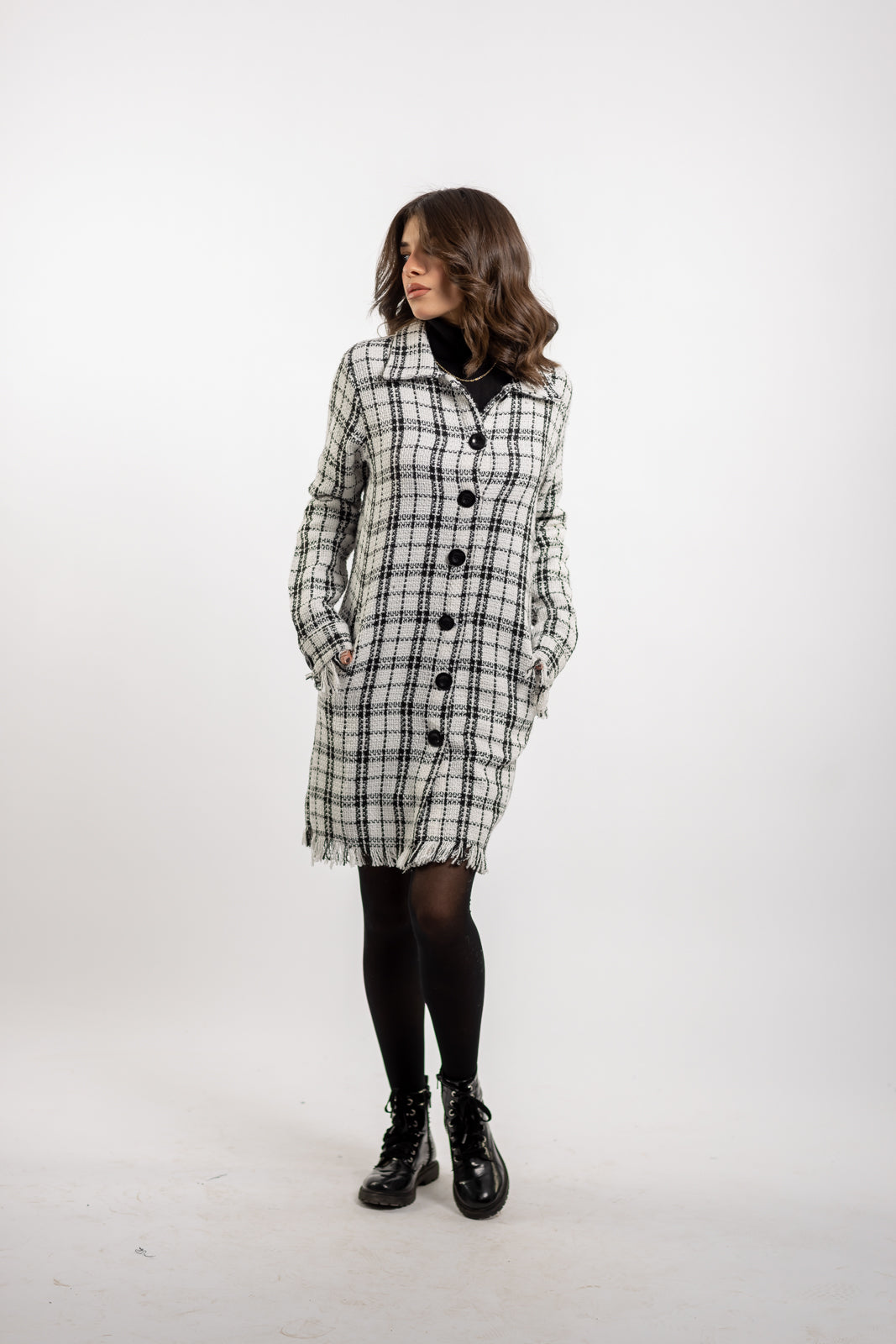 Stay warm and stylish with our Long Checkered Wool Shirts.With a classic checkered design and soft wool material, this shirt offers both functionality and fashion. The fringe detailing adds a unique touch, making it a must-have for any wardrobe. Stay cozy and on-trend this season with our checkered wool shirt. shirt