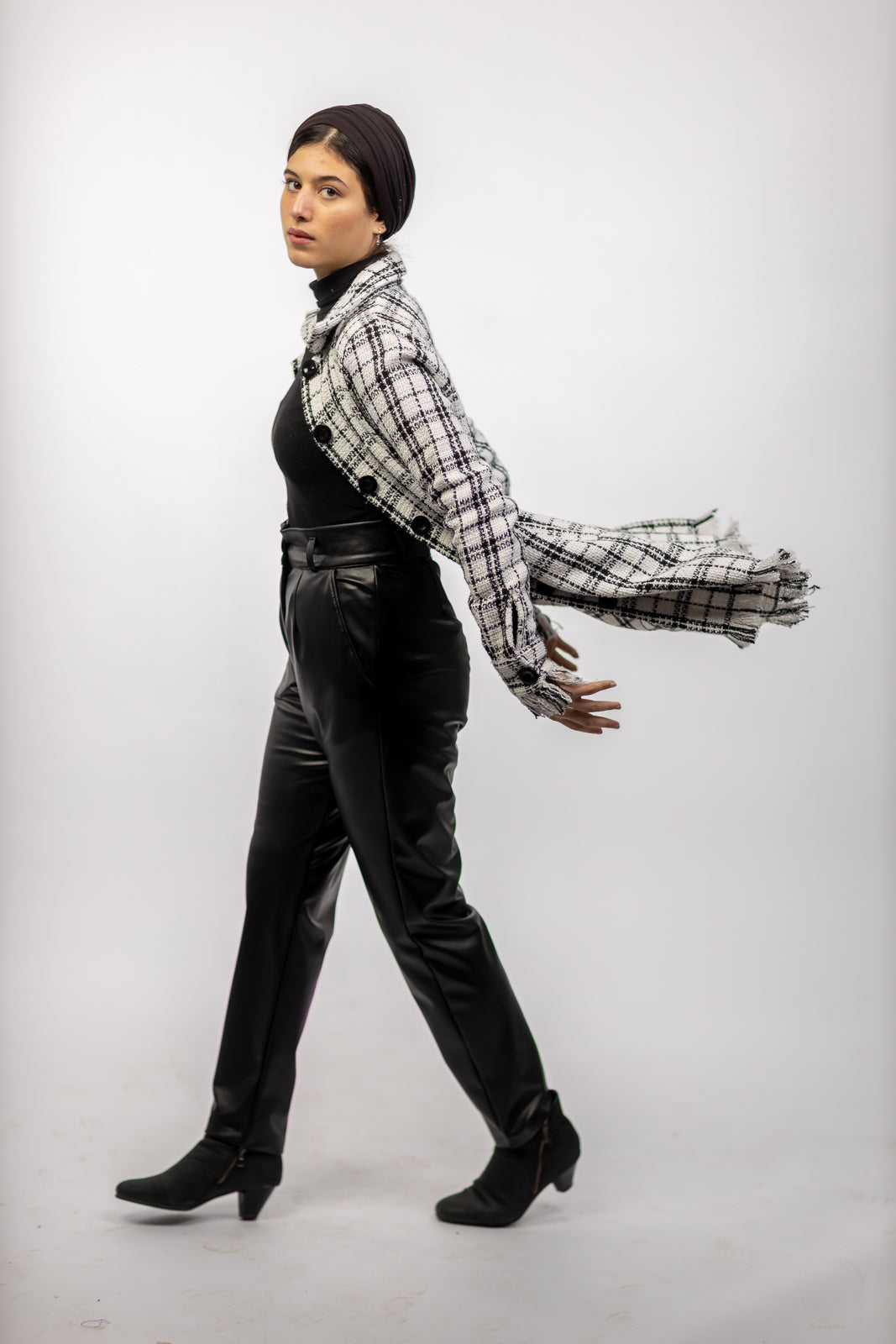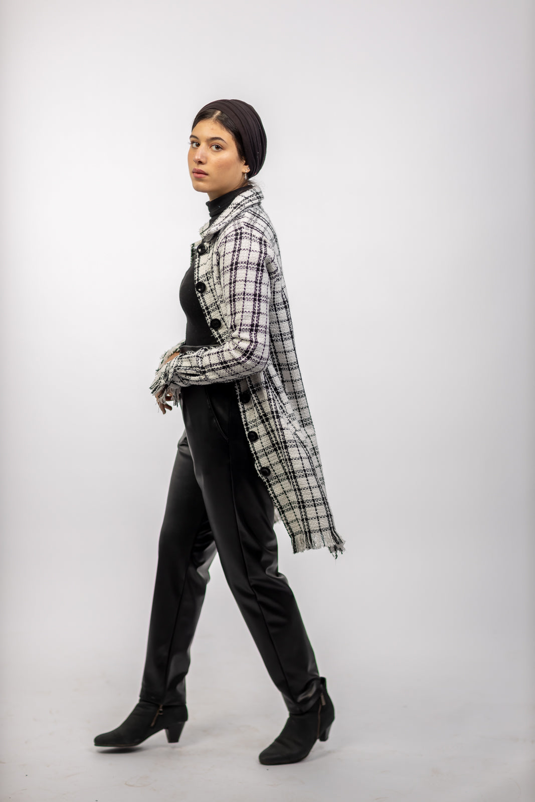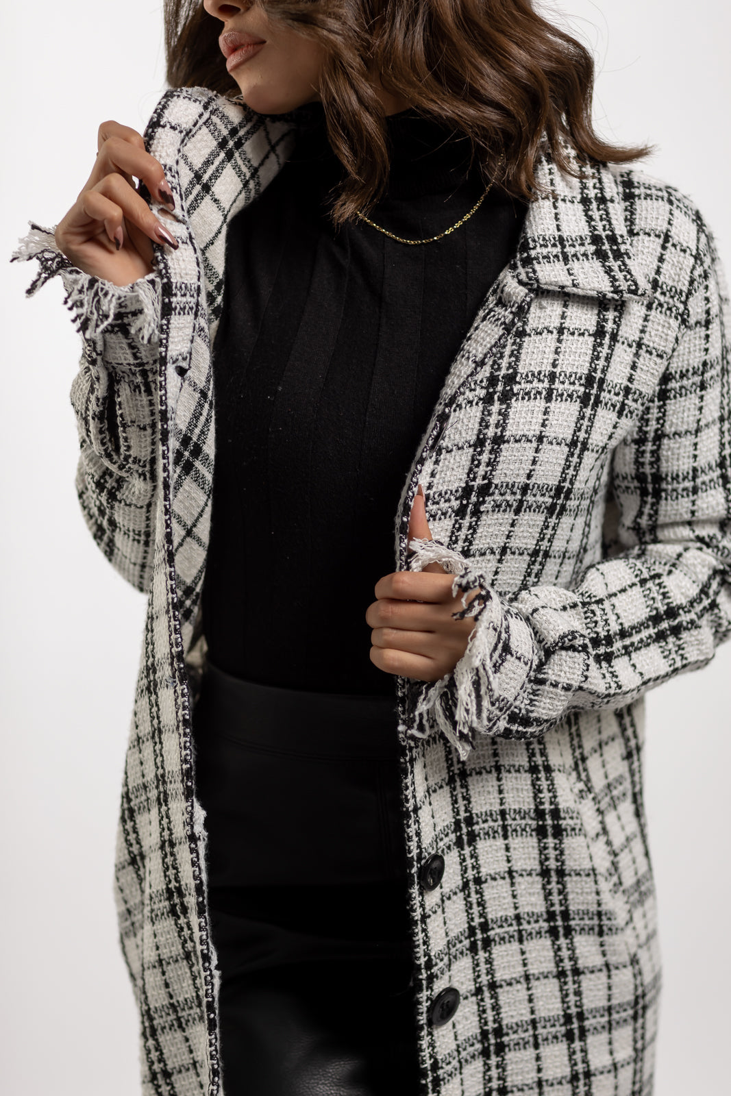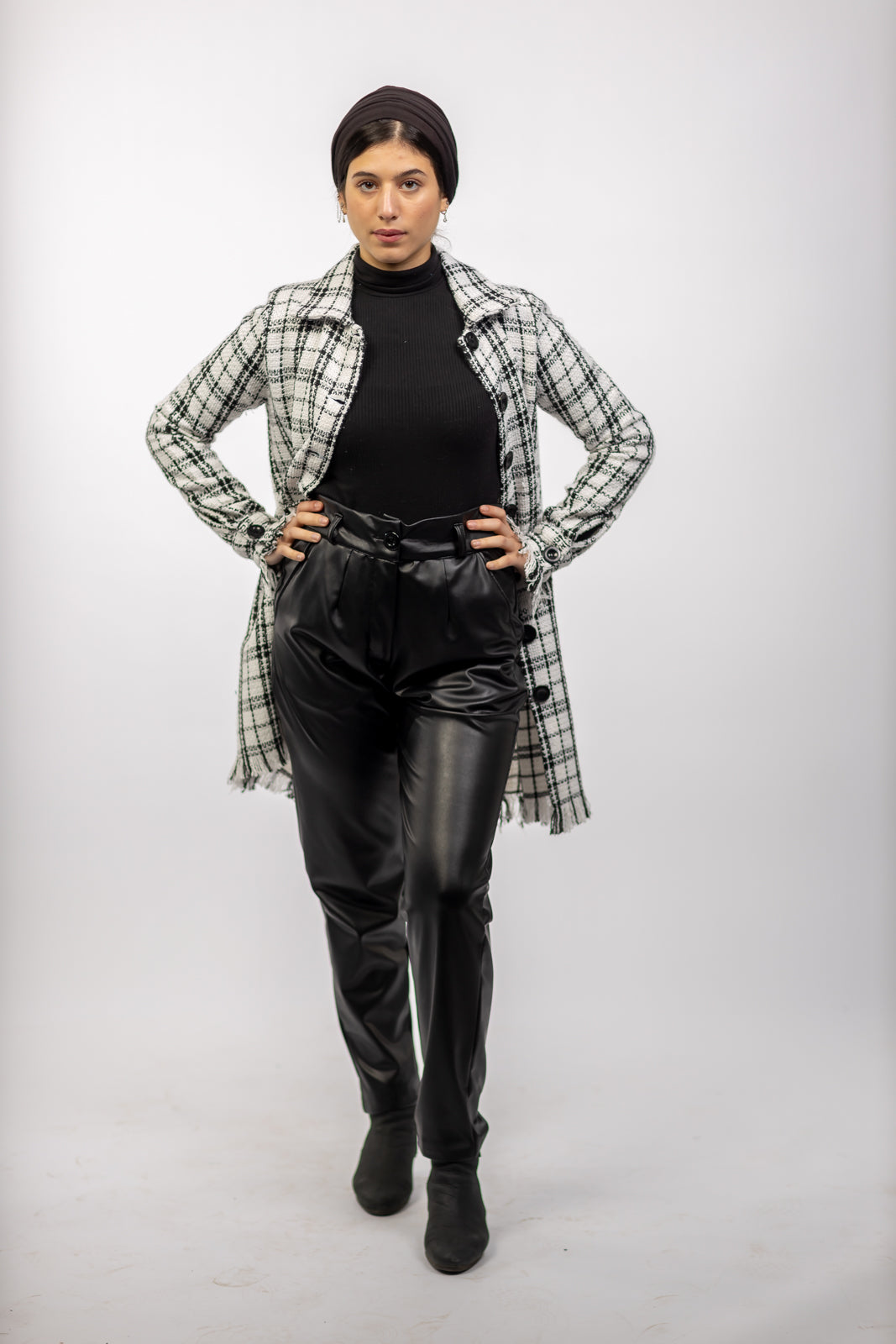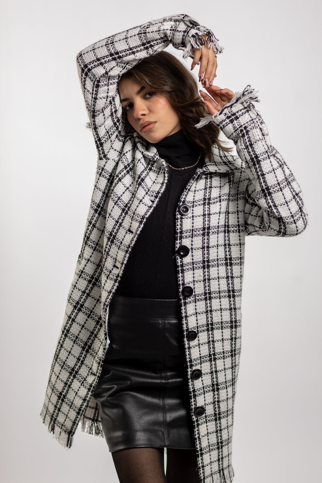 Stay warm and stylish with our Long Checkered Wool Shirts.With a classic checkered design and soft wool material, this shirt offers both functionality and fashion. The fringe detailing adds a unique touch, making it a must-have for any wardrobe. Stay cozy and on-trend this season with our checkered wool shirt. shirt