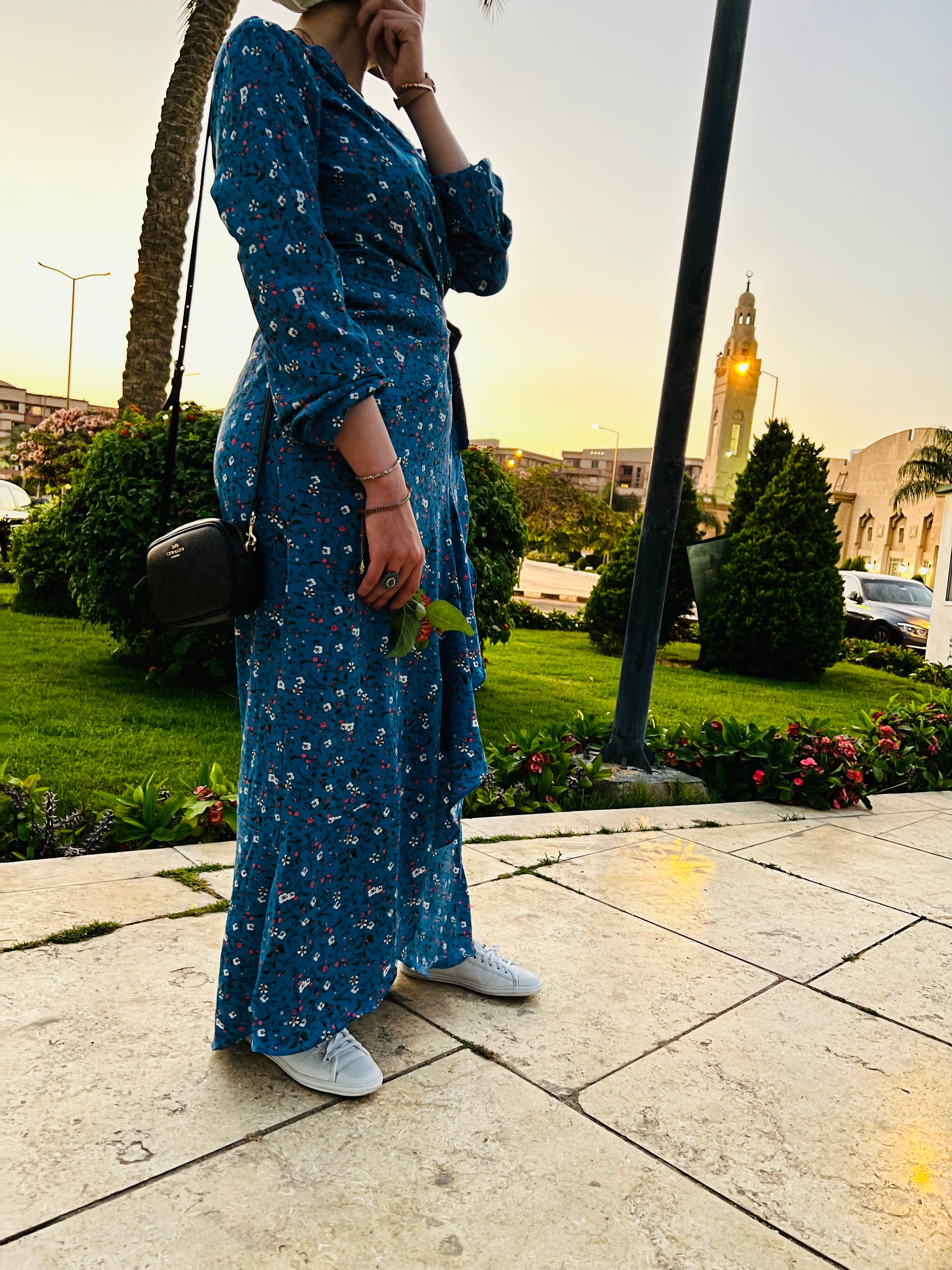 Expertly designed for versatility and style, our Azure dress is a must-have addition to your wardrobe. Made from breathable crepe fabric in a stunning yellow color with a floral pattern, this dress is perfect for any occasion. Whether you're heading to a wedding or a day out with friends, our dress will keep you comfortable and looking effortlessly chic.