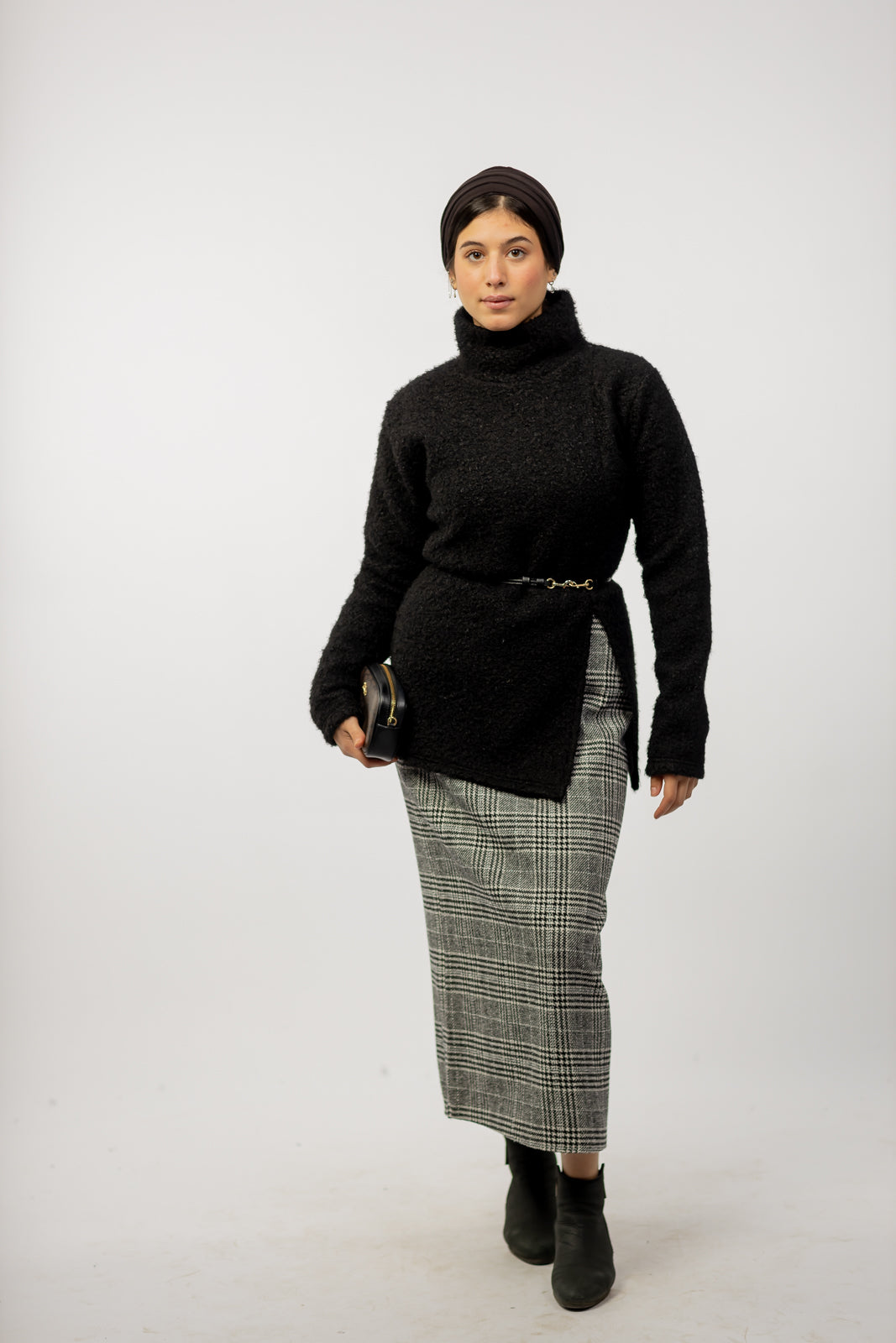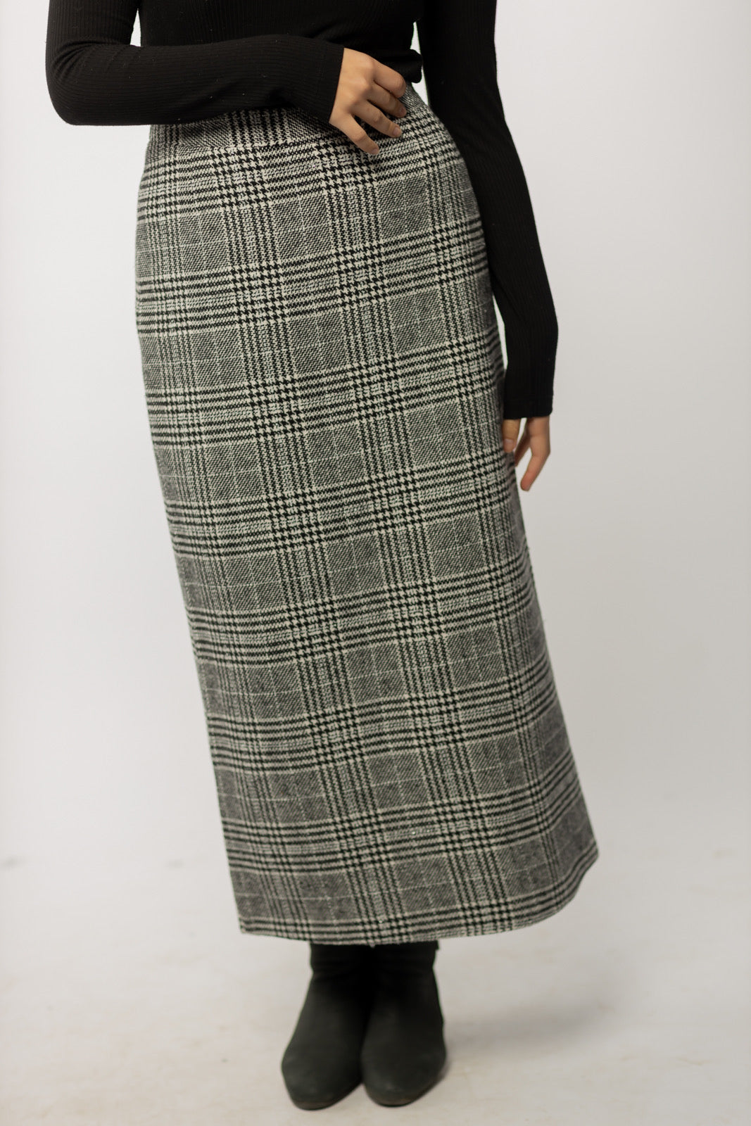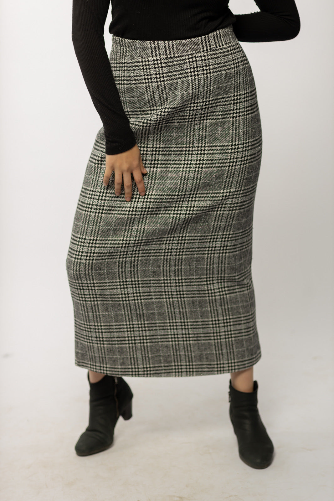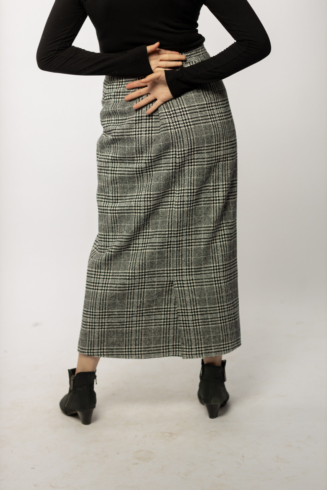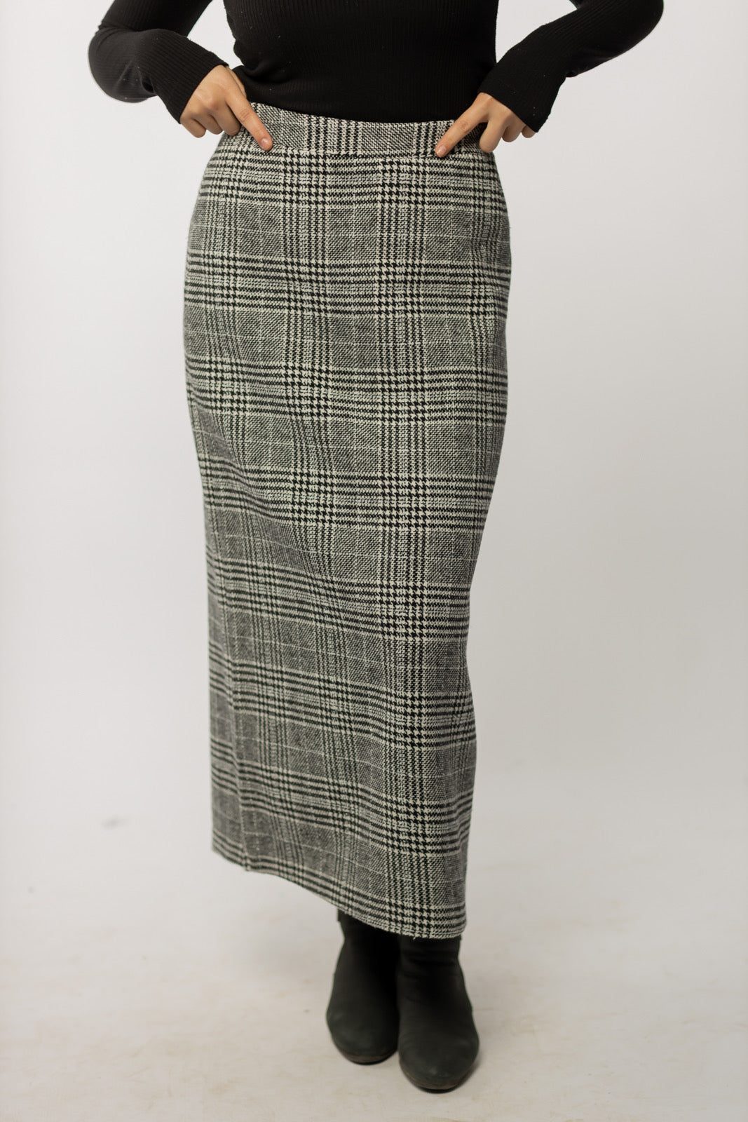 Wool Checkered Pencil Skirt