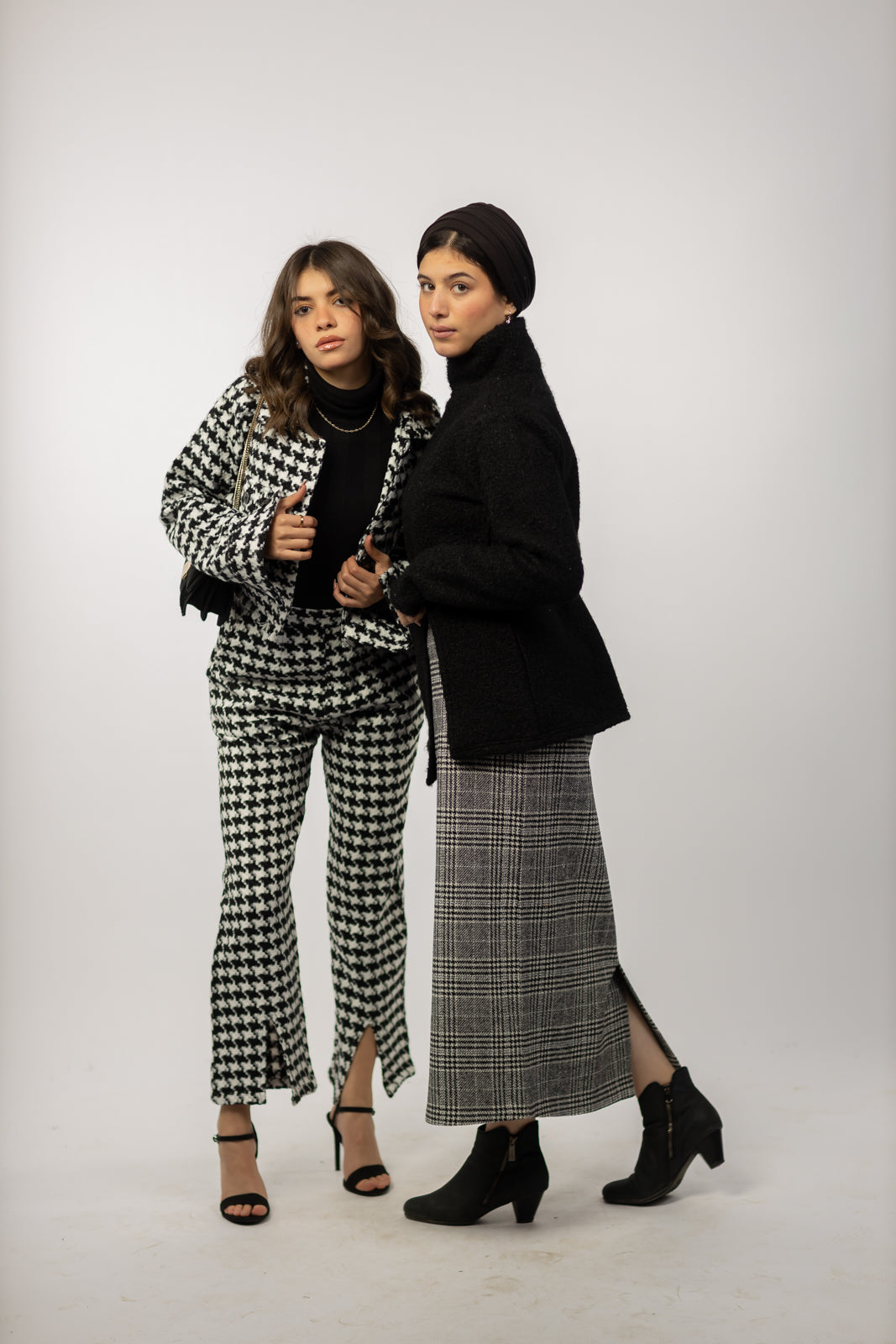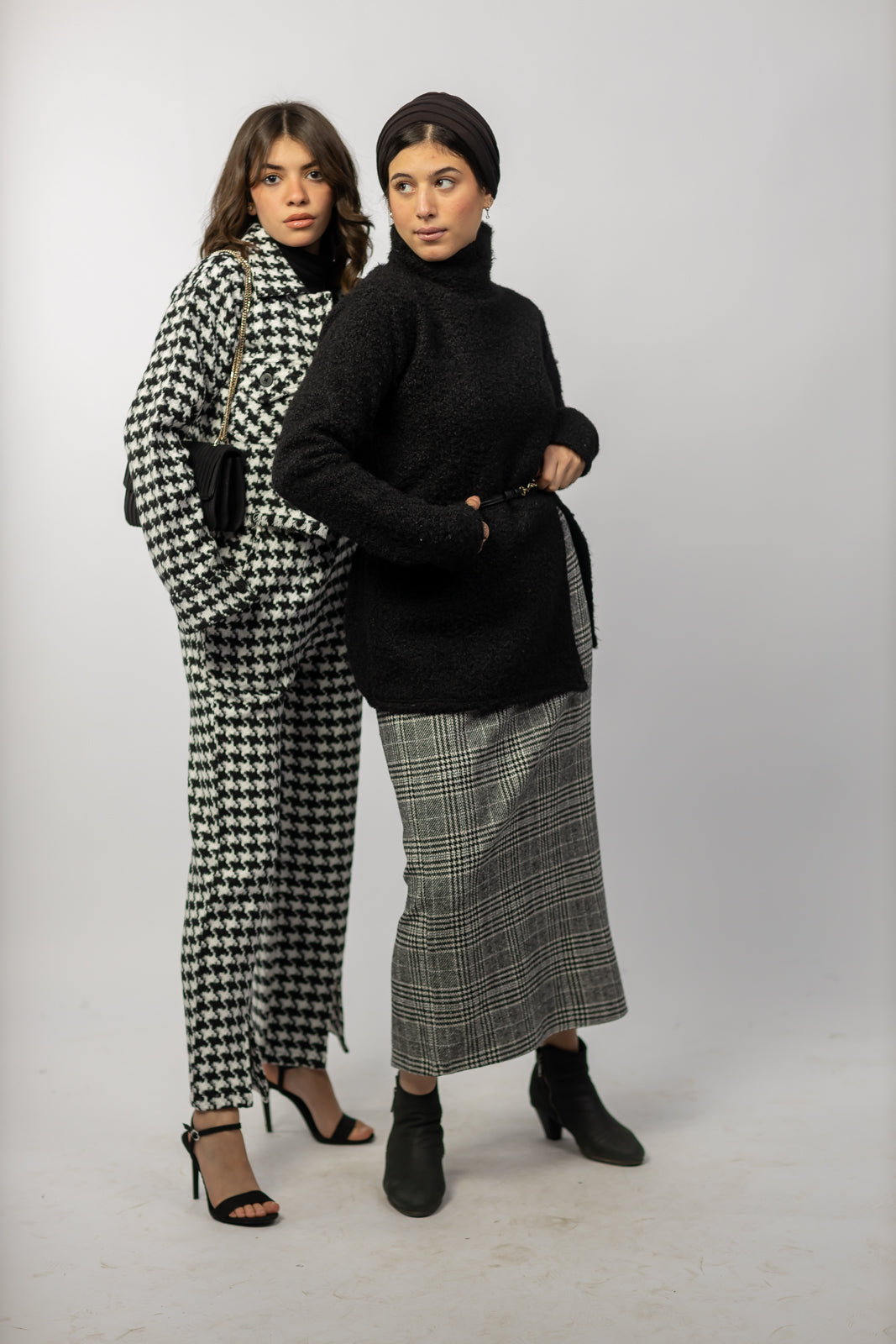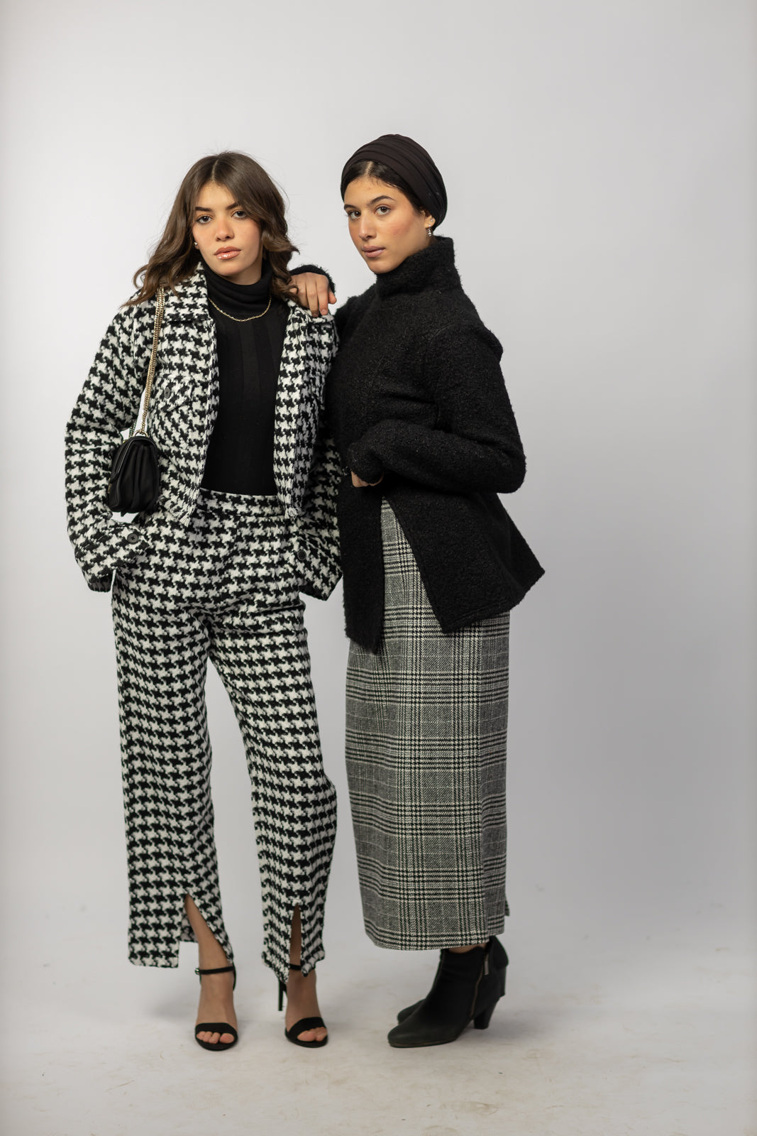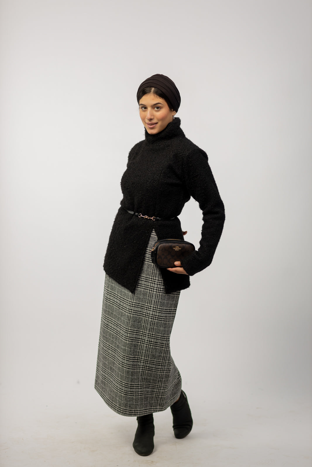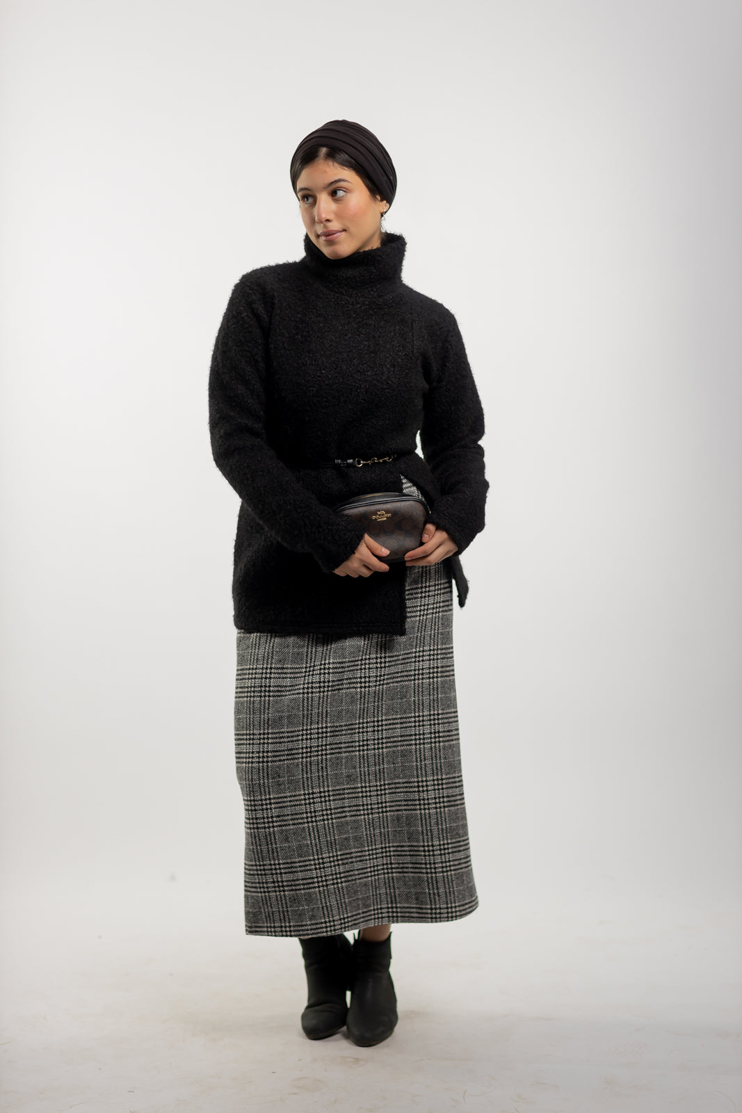 Wool Checkered Pencil Skirt